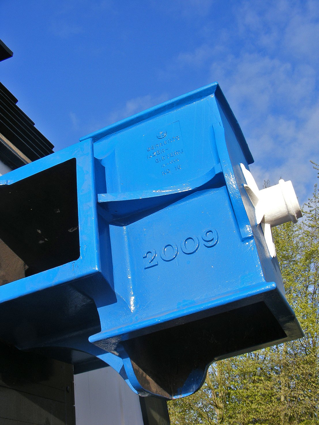 Heb paar jaar geleden correspondentie gehad met de molenaar aldaar om de fabrikaatgegevens van de gietijzeren as te vragen. Die is in 2009 gegoten bij Geraedts in Baarlo (Lb.) met het nummer 15. Mijn molen in Kolham heeft de as van dezelfde gieterij met nummer 16. Er werd in Best abusievelijk ook nummer 16 genoemd. Dus de zaak inmiddels rechtgezet. Ik heb sinds 1983 een lijst opgebouwd met alle molenassen van Nederland en vele tekeningen van gemaakt. Ik ben in staat om van honderd meter afstand aan de askop zien van welke gieterij die afkomstig is.