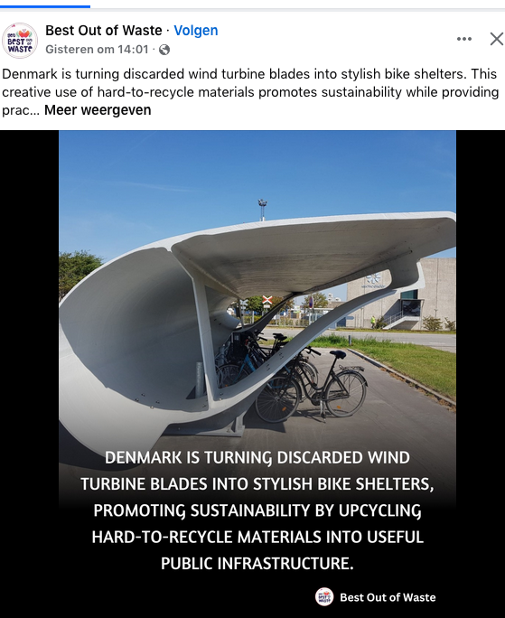 ik was onderweg op feesboek en zag een fietsenstalling van een oud windturbineblad: ik vind 't een mooie toepassing