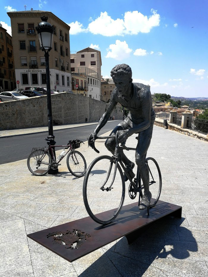 Met dank aan Leon, maar dan zonder "verbrande". Zoeken op "una estatua de una bicicleta" gaf snel de oplossing.