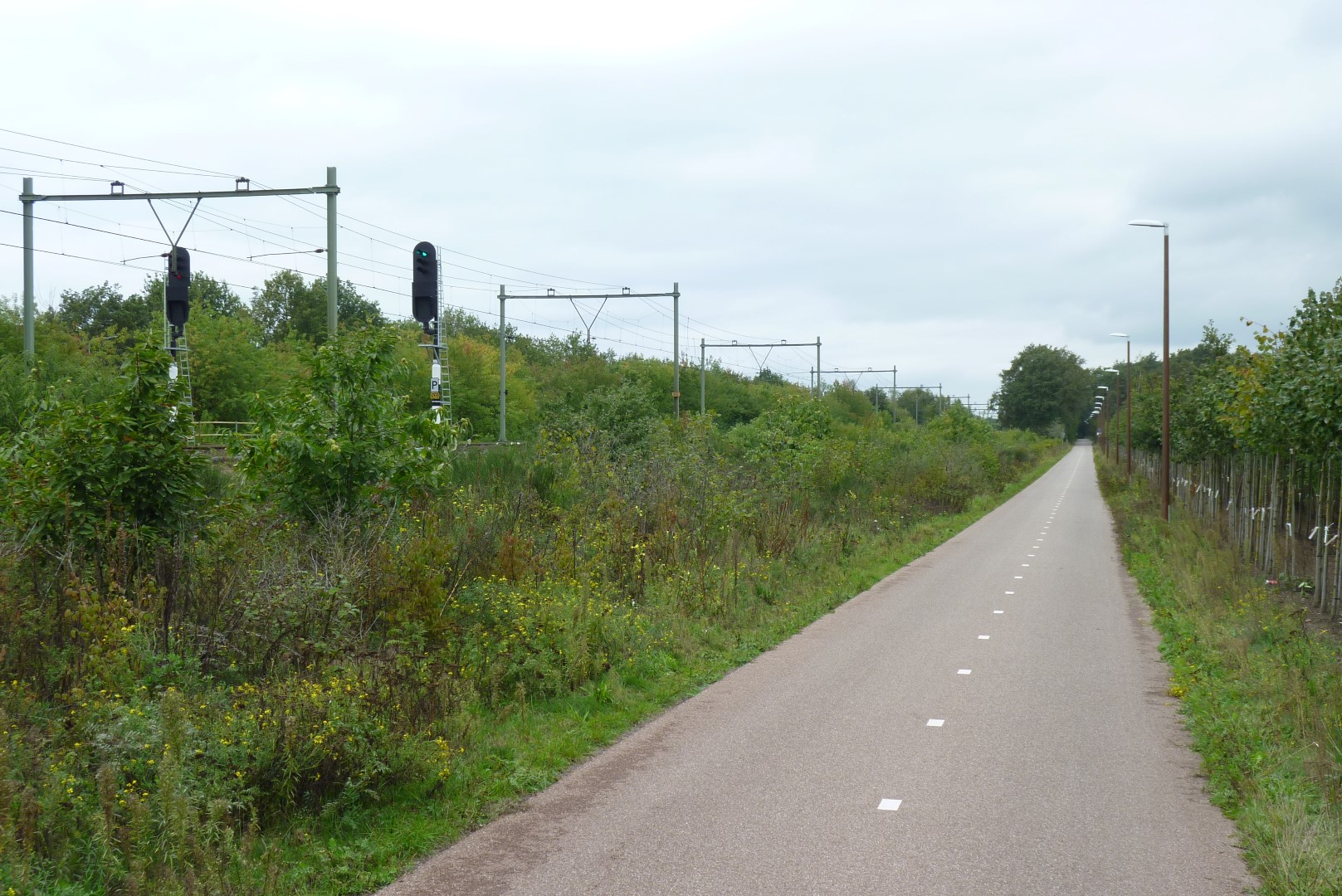 Dit doet me denken aan Duiven-Zevenaar-Babberich, maar daar is de spoorbaan niet hoog gelegen als op de raadselfoto.