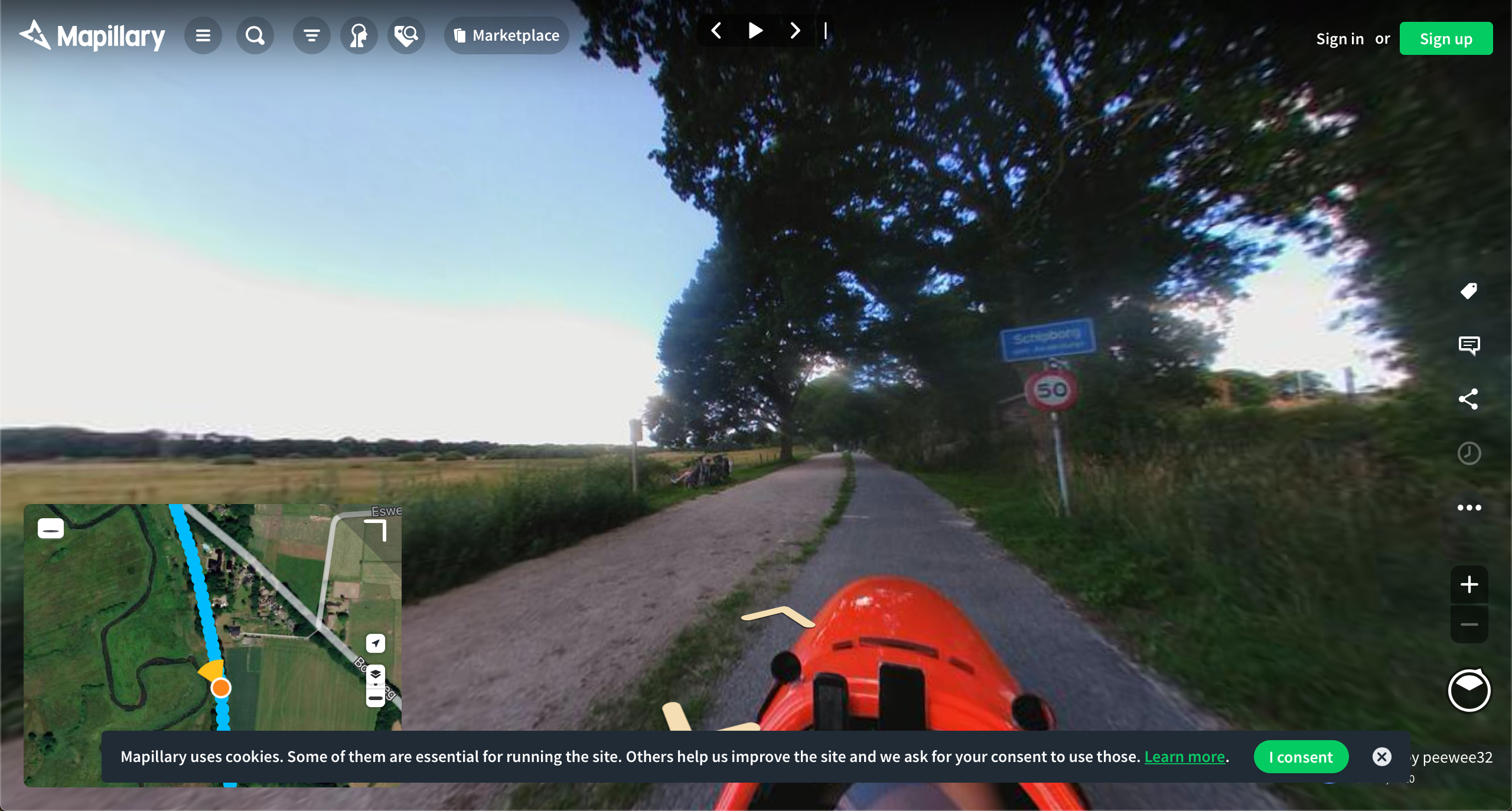 Met dank aan Marjan, die toch echt de oplossing van het plaatje van Ligsporter aandroeg. Leuk te zien dat de mapillary foto vanuit een ligfiets genomen is..Marjan schreef: ↑do 29 okt, 2020 09:08Eens! Ik fiets daar ook graag.Ligsporter schreef: ↑do 29 okt, 2020 08:55Afgelopen zomer was ik daar om te genieten van het Drentsche Aa gebied. Een schitterend gebied is dat met een uniek beeksysteem. Uniek, omdat het nooit door ruilverkaveling is rechtgetrokken.