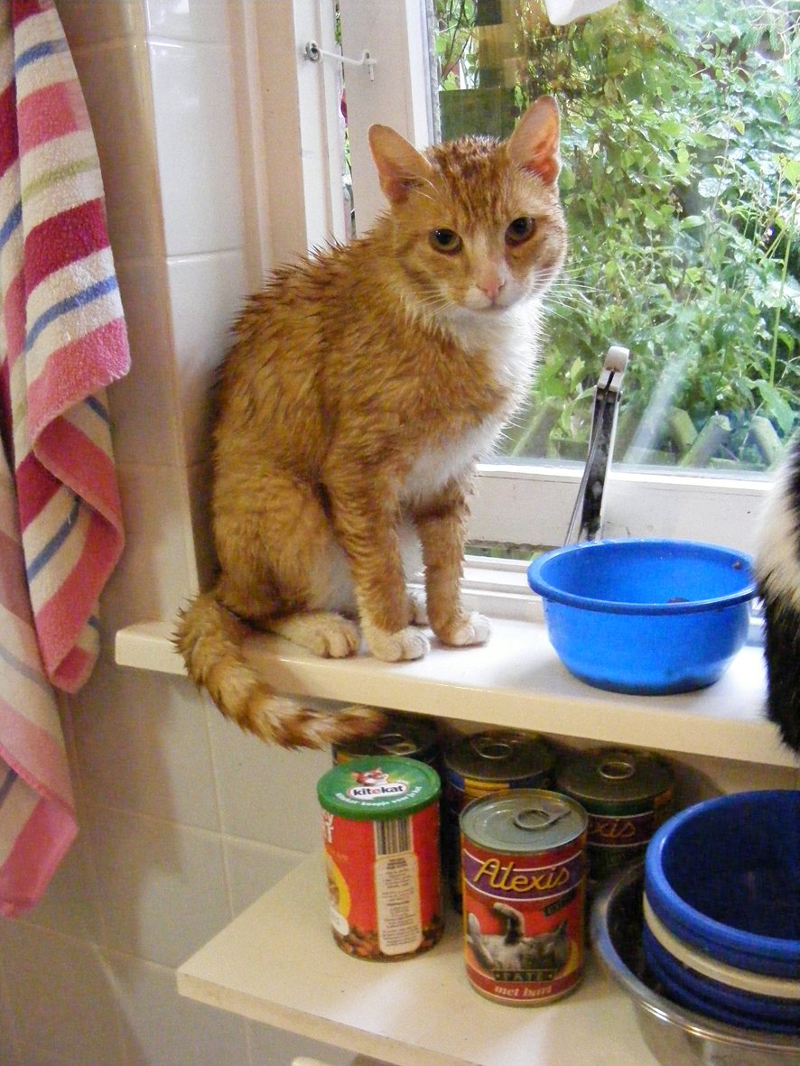 Volgende, goed voor een recordtijd? in welk gehucht ben ik nu weer verzeild geraakt? (Met hint. Dat plaatje is ergens van internet, onze eigen poezen houden zichzelf schoon.) De naam van het gehucht, waarvan de naam op het witte bord onder het blauwe staat, is genoeg.