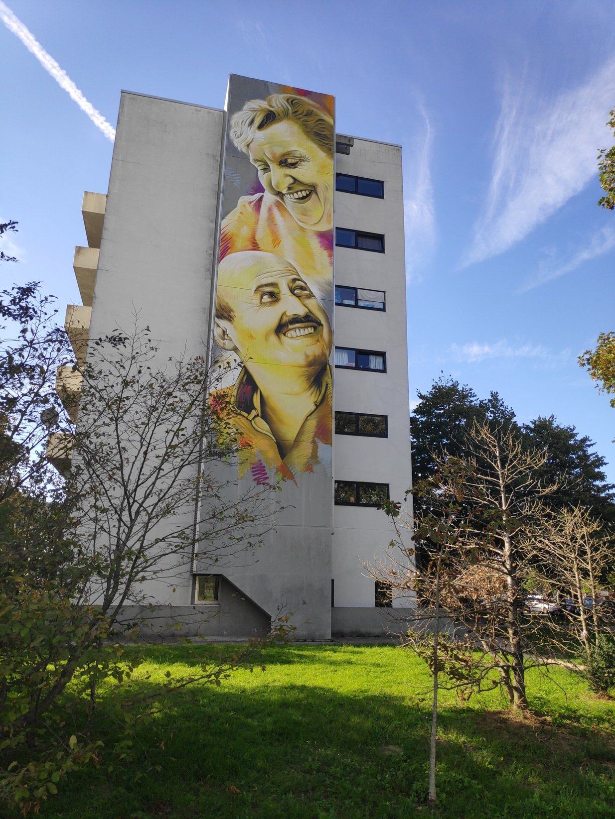 "Jumping Wolf", luidt de titel van deze imposante muurschildering. We liepen er toevallig langs op weg van ons appartement naar het centrum.