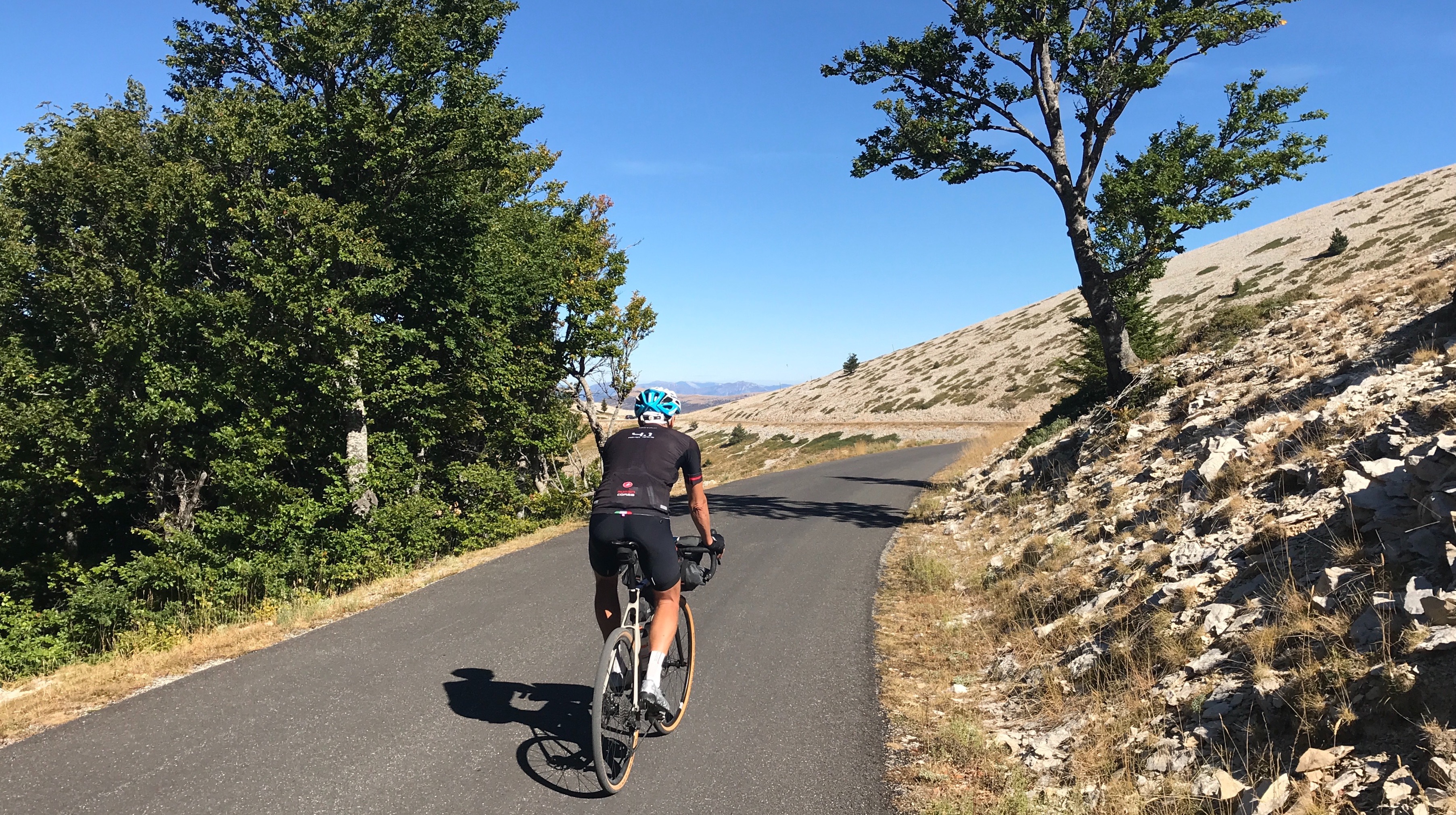 Mijn eerste ingeving was op de flanken van de Mont Ventoux, maar die smalle weg pleit daar tegen.