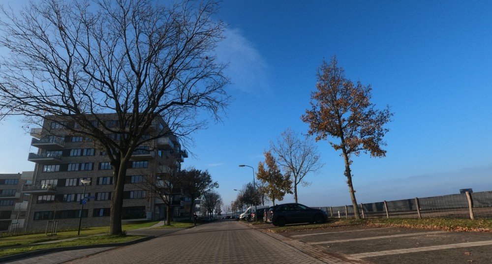 KloptEr is dus een ex-bedrijventerrein en nu bebouwde kom. Het is dus in een woonplaats. Links van ons een dikke flat.