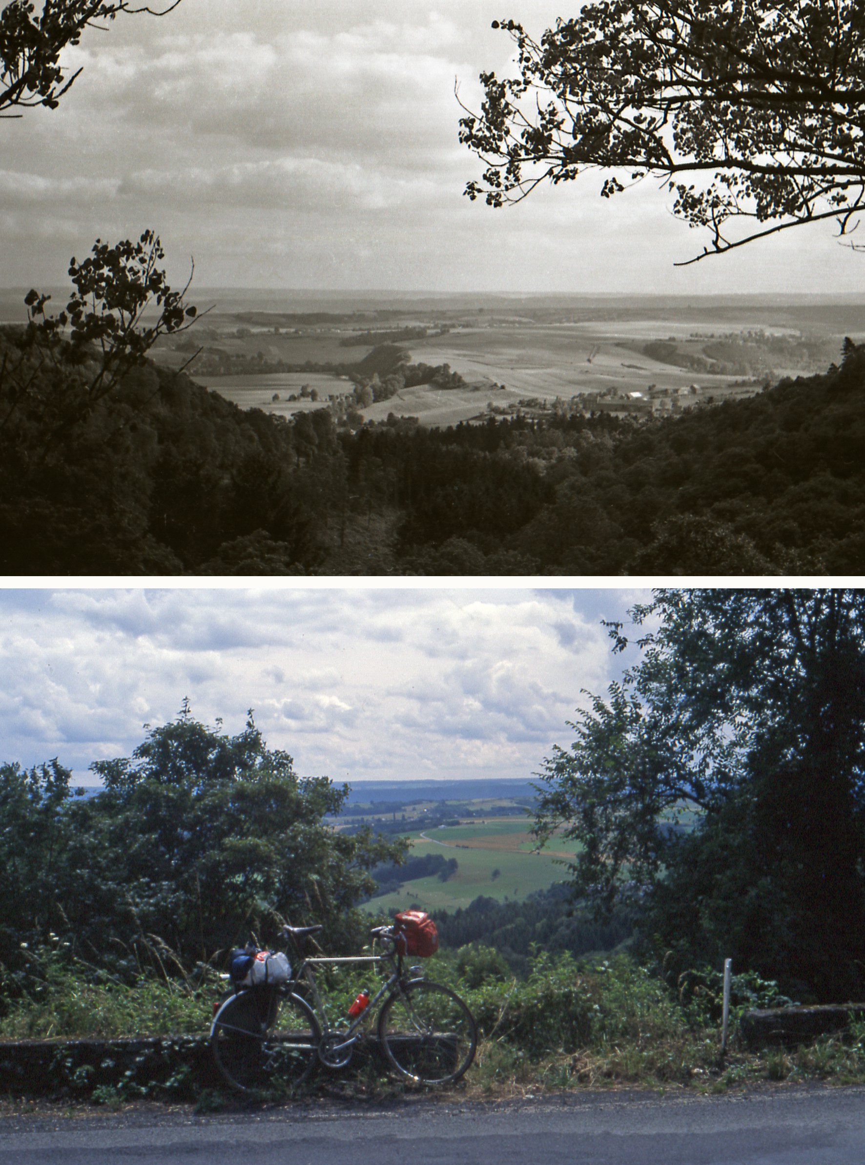 Hier nog een keer een foto van mijn vader uit 1951 en in 1995 heb ik dezelfde plek gevonden waar hij stond te fotograferen. Zelfs bepaalde patronen in het landschap op de achtergrond zijn nog herkenbaar.