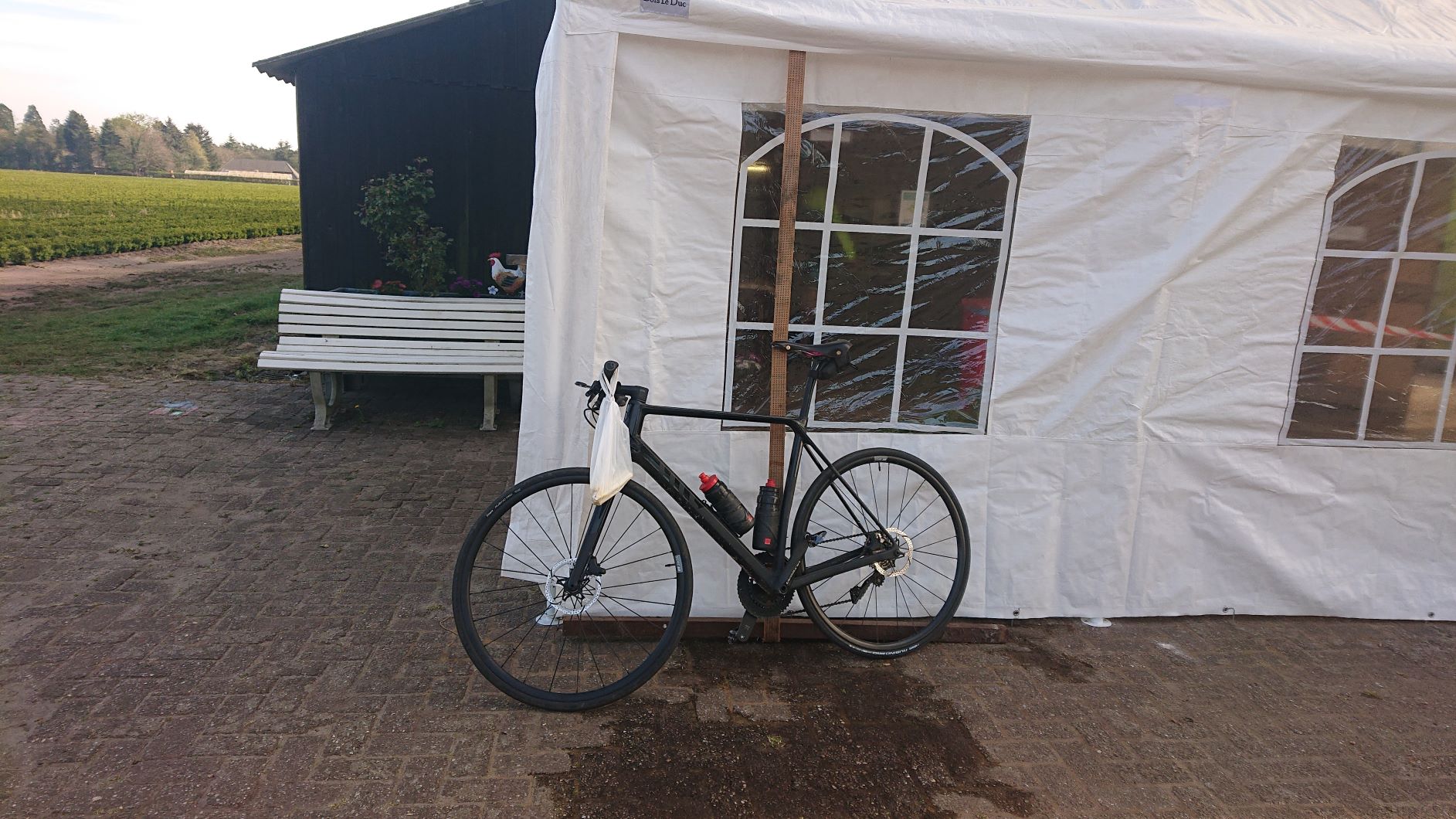 Zaterdag fietsen we eerst een stukje tegen de wind in naar het oosten. Tot onze verbazing is er in Alphen aan den Rijn nog altijd een drukke weekmarkt, terwijl die in Leiden al enkele weken niet meer mag plaatsvinden. Ook buiten de dorpen is het niet heel stil, maar we hebben genoeg ruimte. Opvallend zijn de vele onbemande bloemenstalletjes langs de wegen, waar kwekers toch nog iets van hun waren proberen te verkopen, nu de export ingestort is.
