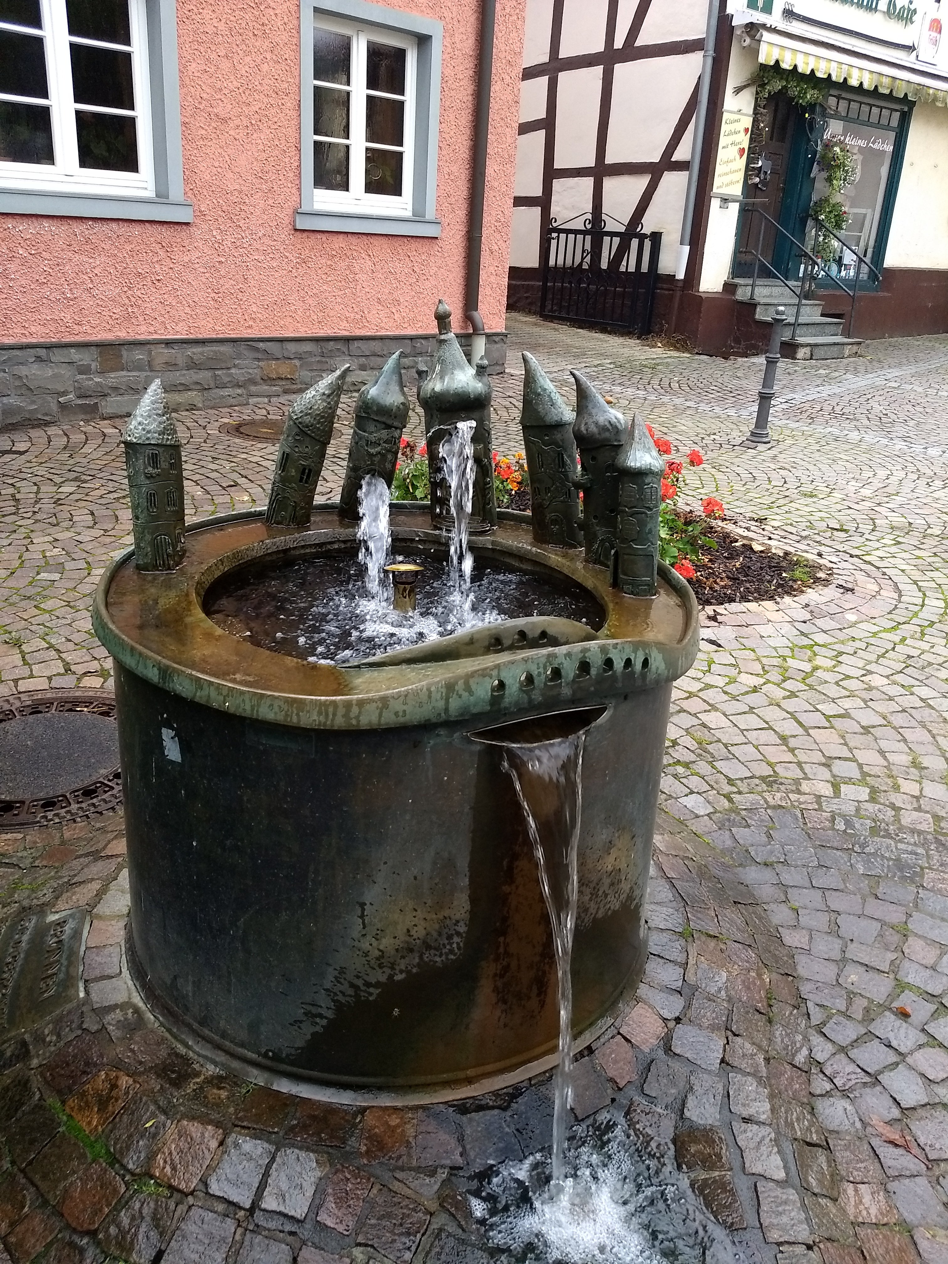 Je had de teksten "Kleines Lädchen mit Herz" op het winkeltje weg moeten halen, want bij het googlen kwam dit als eerste op een adres in Heimbach. Daarna op Google afbeeldingen "Brunnen in Heimbach" gezocht, om zekerheid te hebben en dan bingo! Bovendien was ik in 1963 daar op schoolreis. Ik bekeek van een afstand de Schloss van Heimbach en na afloop maakte ik in de schoolklas hiervan een tekening. Mijn leraar haalde een ansichtkaart uit Heimbach te voorschijn en hij was verbaasd over mijn scherpe fotografische geheugen: de tekening klopte precies tot in detail. En ik was 12 jaar....