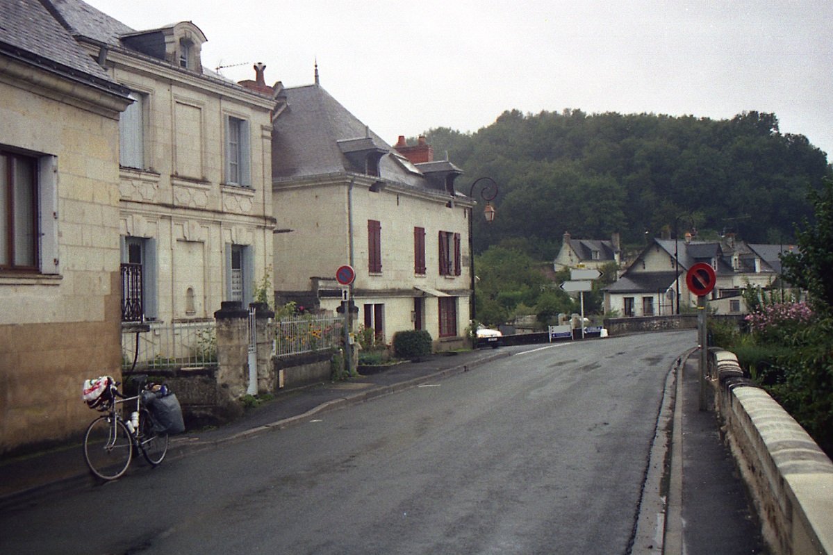 Chinon niet maar wel aan de andere oever niet ver stroomafwaarts. Bovendien ligt Chinon niet aan de Loire, maar Vienne. Mijn fiets op de foto staat langs de Loire rechts buiten beeld.