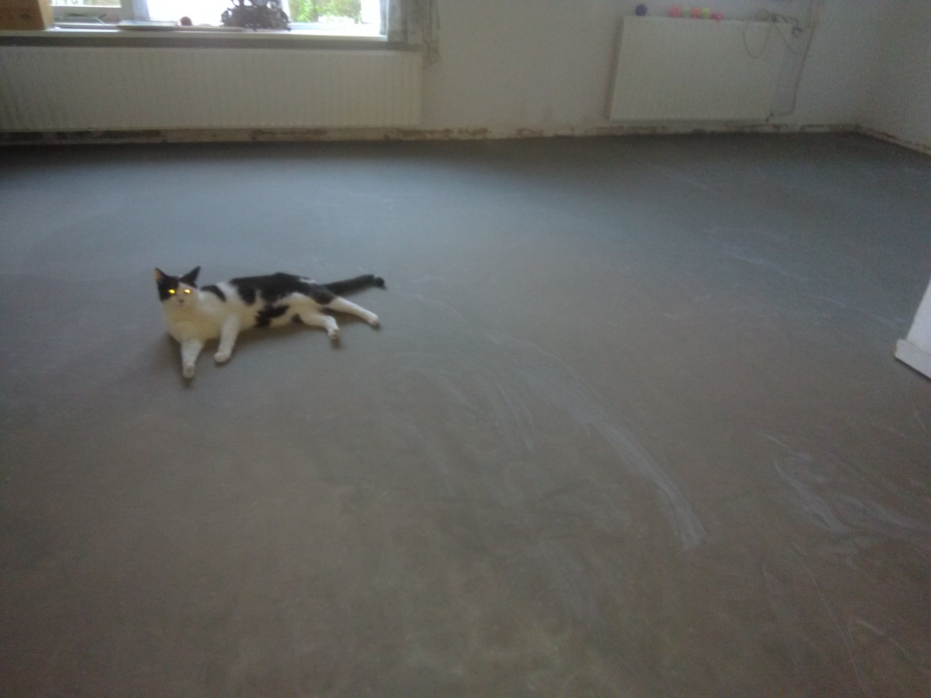 tag:De sneldrogende cementlaag is gisterochtend gegoten door een tegelzetbedrijf. Al voor 18.00 uur keihard droog konden wij naar binnen na een verbanning buitenshuis. Morgen zou de tegelzetter de tegels (soort van warm beige gemarmerd 30 x 30 cm) leggen, maar een telefoontje uit Siddeburen: vrachtwagen gemist....