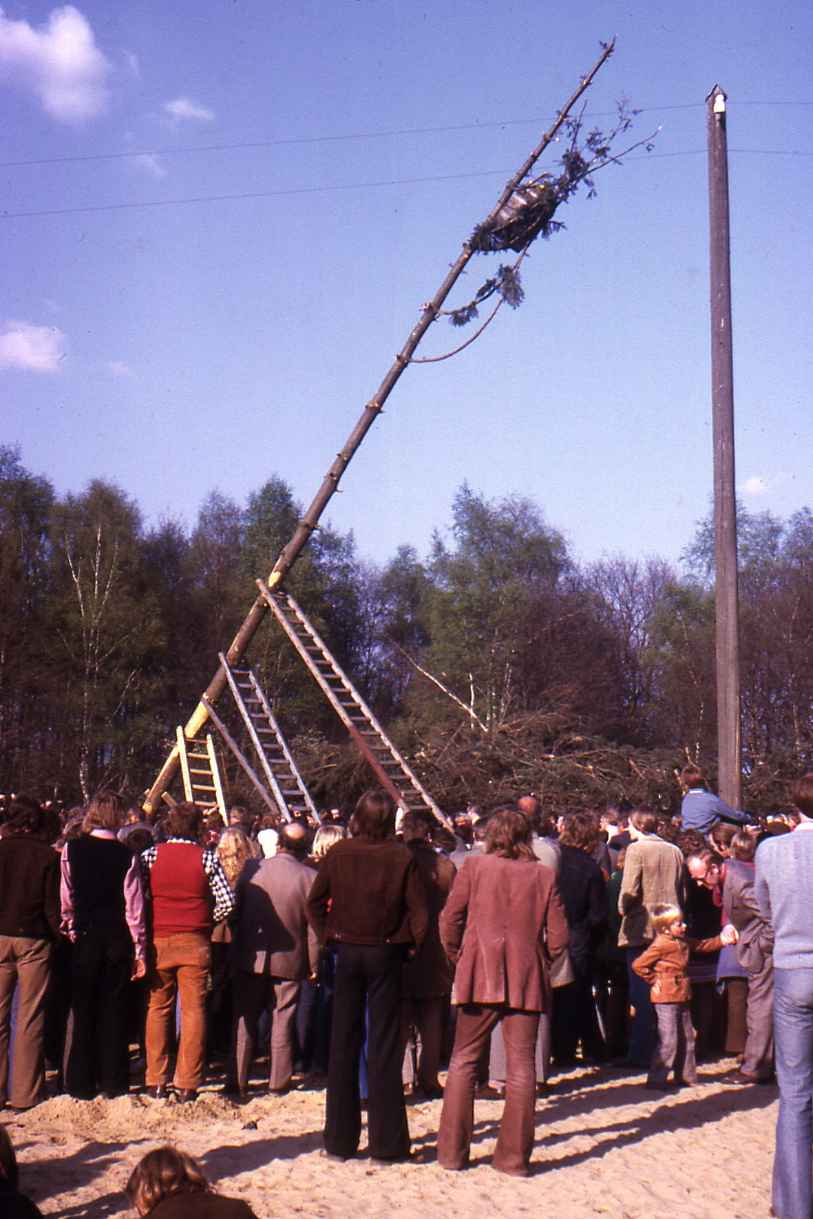 Met Pasen in 1974 stond er een hele meute mensen aan de hekken van kasteel Singraven te rammelen om de kasteelheer te vragen of ze daar een boom mogen omhakken. Daar was ik helemaal bij aanwezig. Onder het gezang van Psalmen werd de van takken ontdane boom naar de katholieke kerk van Denekamp gesleept, waar een dienst werd gehouden om vervolgens verder te slepen naar een plek, waar hij, voorzien van een ton met pek in de top, werd opgericht om die avond een Paasvuur van te maken. Is me nog sterk bijgebleven. En dan nog heb ik het "Vlöggeln" in Ootmarsum bijgewoond. Mooie tradities in Twente.