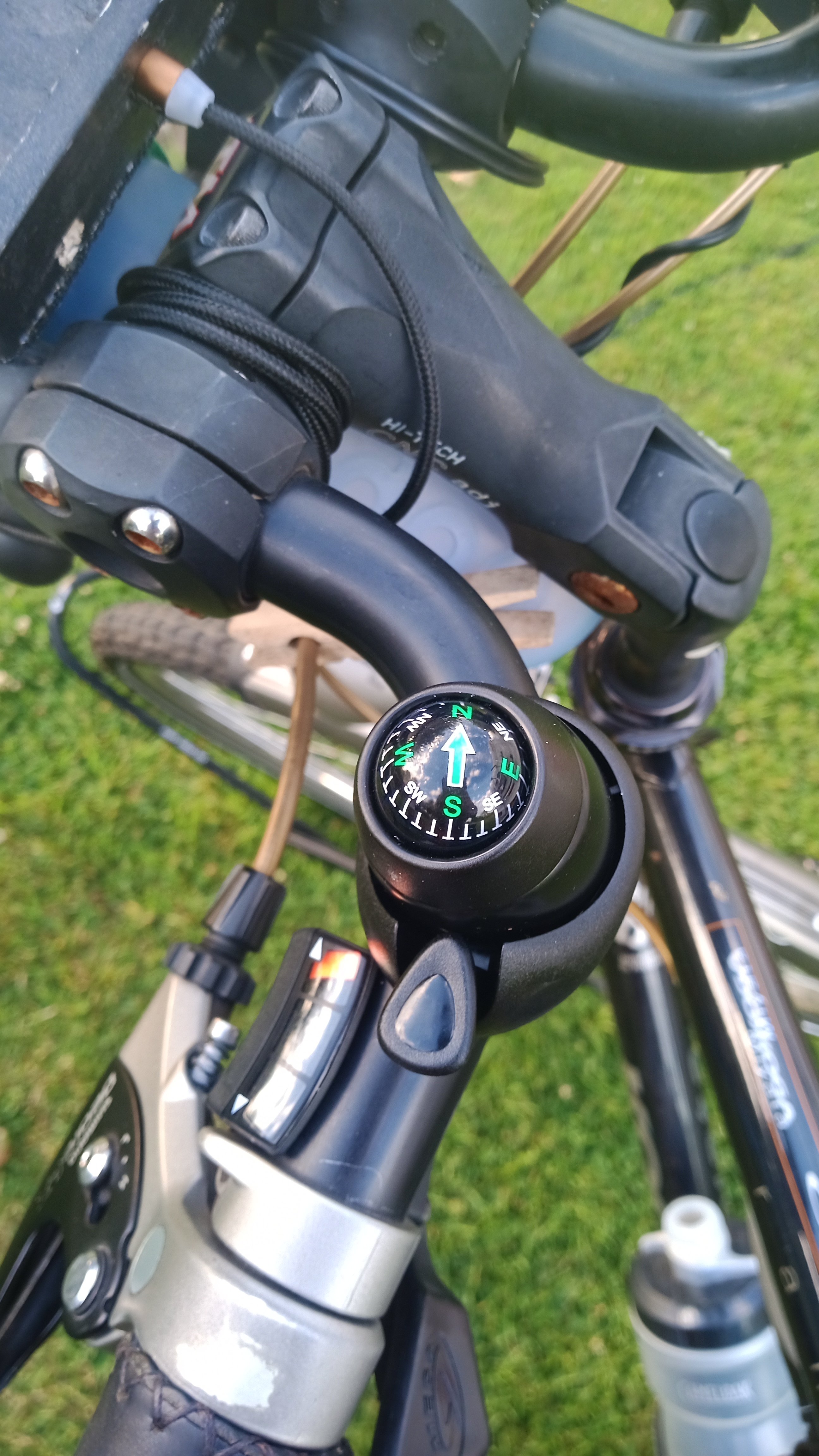 Die mooie kompasbel combineert - in combinatie met mijn stuur althans - belabberd met de magneten van de Ortlieb stuurtasjes.
