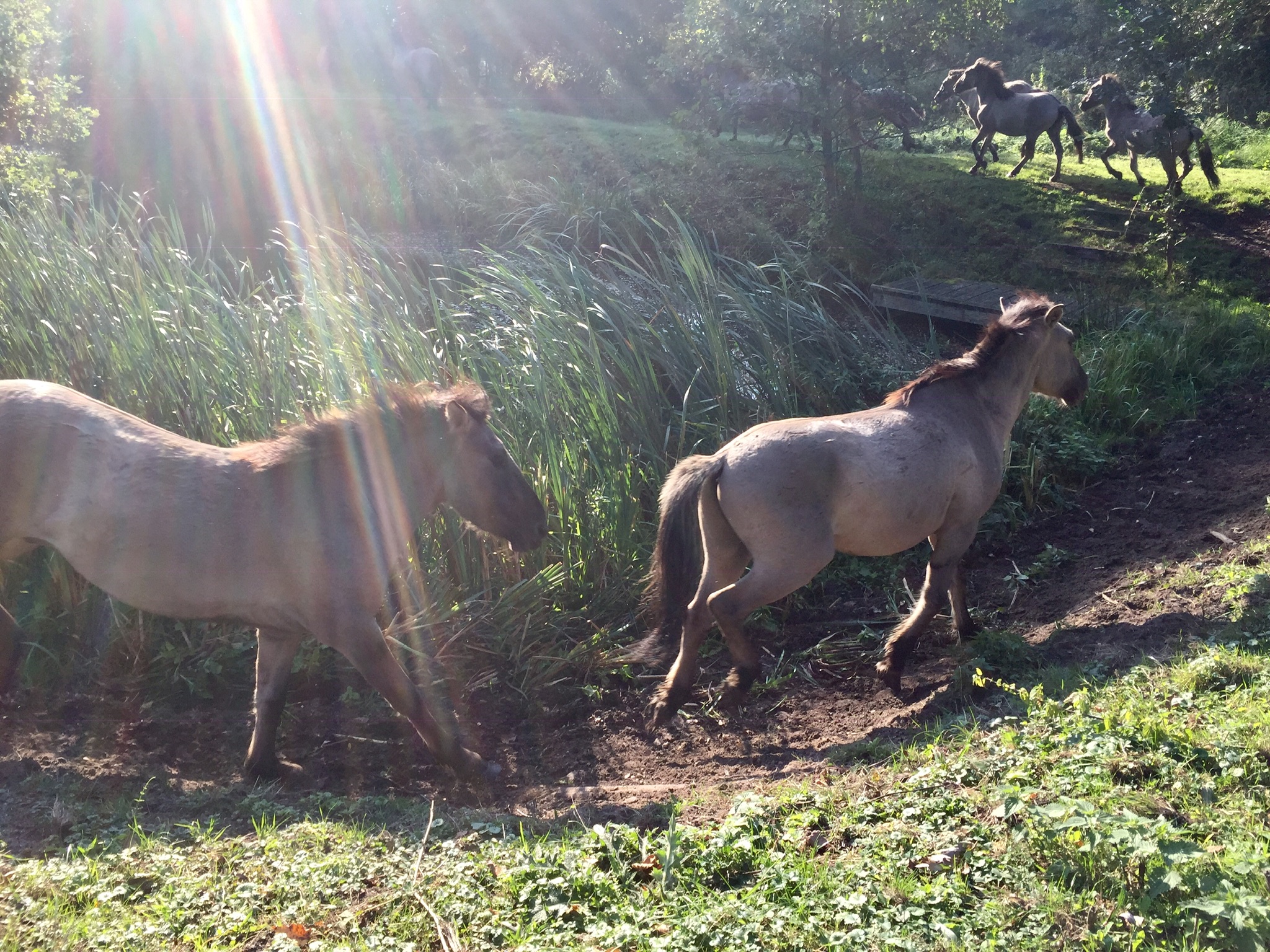 Korte vakantie op de Emmaborg, Midwolda, Groningen. In het natuurgebied loopt een kudde konig-paarden.