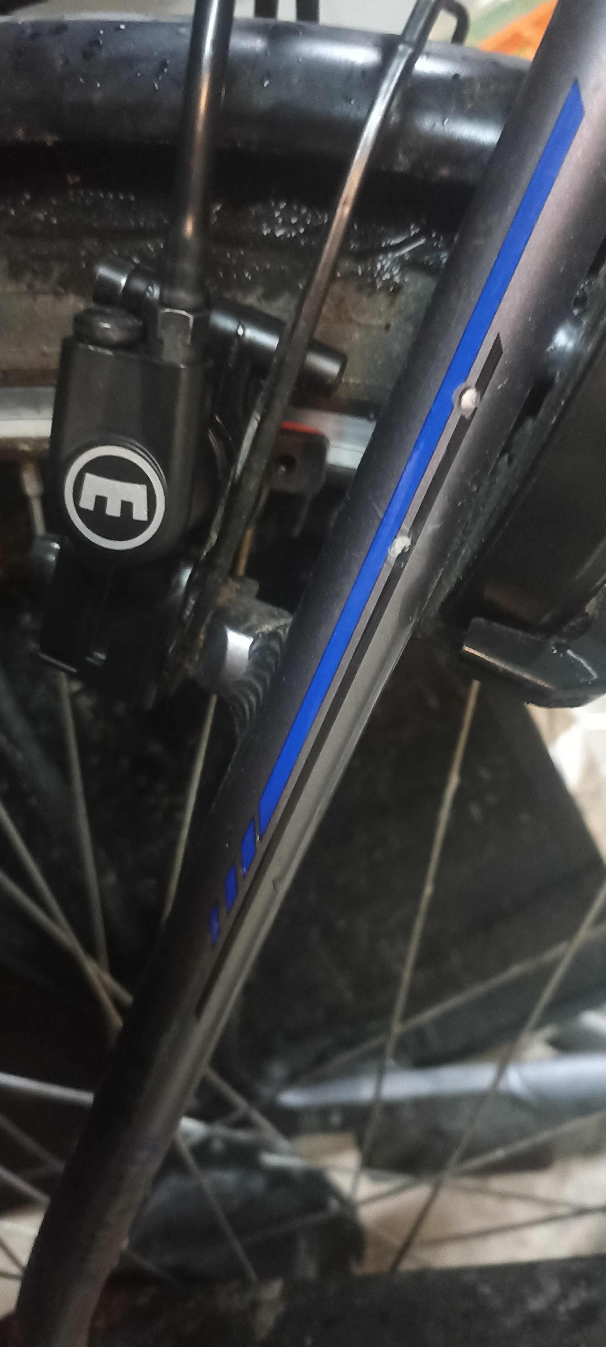 En dan ook nog de remblokjes die niet goed zijn. Want ze zijn zodanig gemonteerd dat een stukje onder de velg doorloopt. Dat kan ik er af snijden, of vervangen.