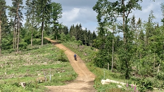 Eenmaal boven kom je op de Hermannsweg en fiets je over mooie zandpaden. Het had de dagen ervoor flink geregend, ik vermoed dat het anders lekker mul zand was geweest.