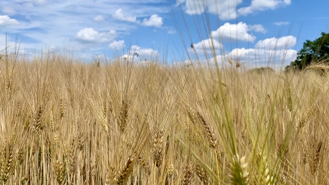 De route blijft wonderschoon, lijkt wat op zuid Limburg. Het graan is geel, de bloemen rood en blauw.