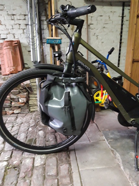 Ik heb vandaag een stukje gefietst met de tassen eraan. De tassen wegen elk 2,6kg dus dat valt gelukkig reuze mee. Heb door kuilen en putten gefietst en ook over kinderkoppen. Tijdens de rit heb ik geen verontrustende zaken opgemerkt. Het fietste ook heel stabiel. Heb even mijn handen los gehad van het stuur en dat ging ook nog redelijk (niet dat ik dat echt van plan ben om te doen uiteraard.)
