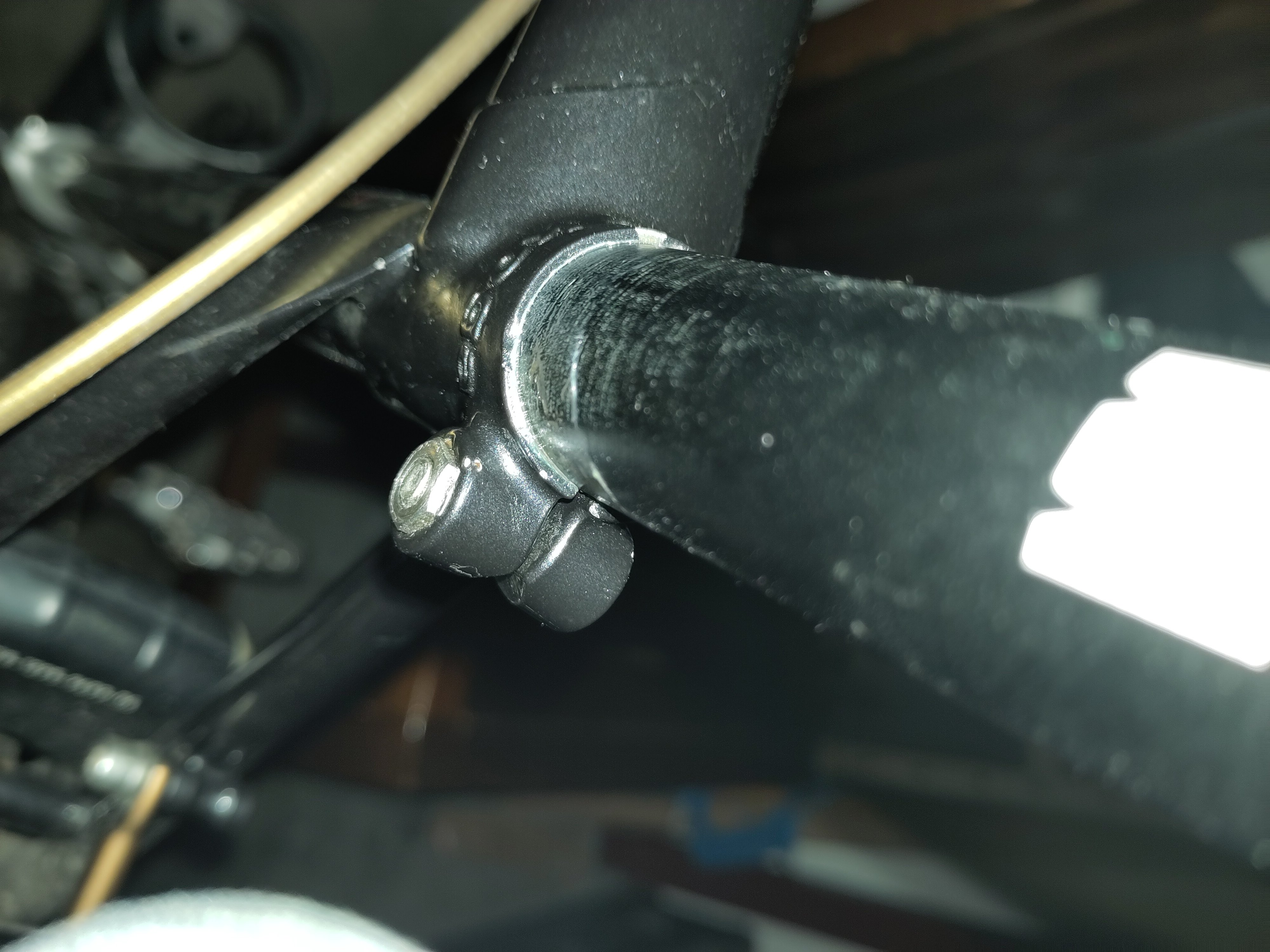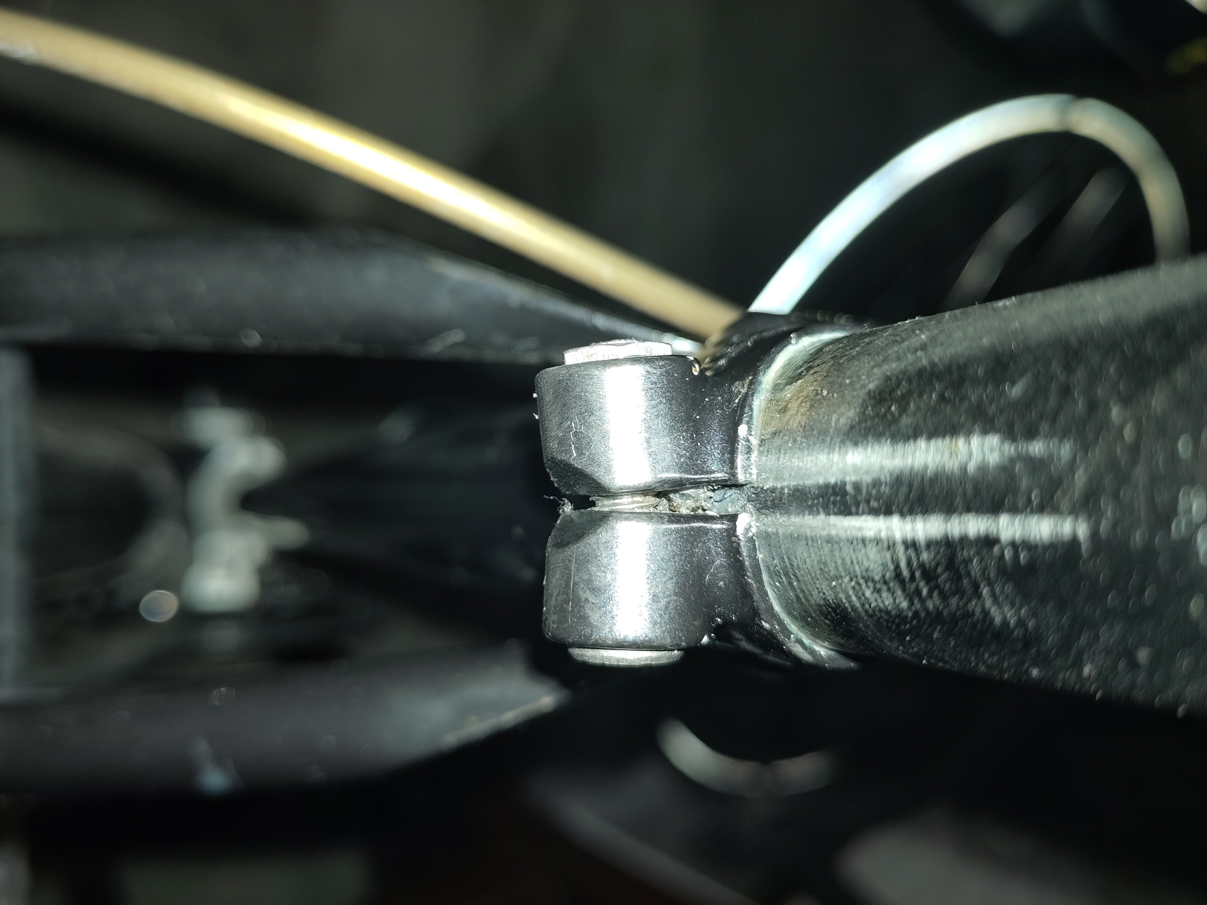 In de spleet zie ik wel schroefdraad, dus het is niet dat de bout ergens op vastloopt.