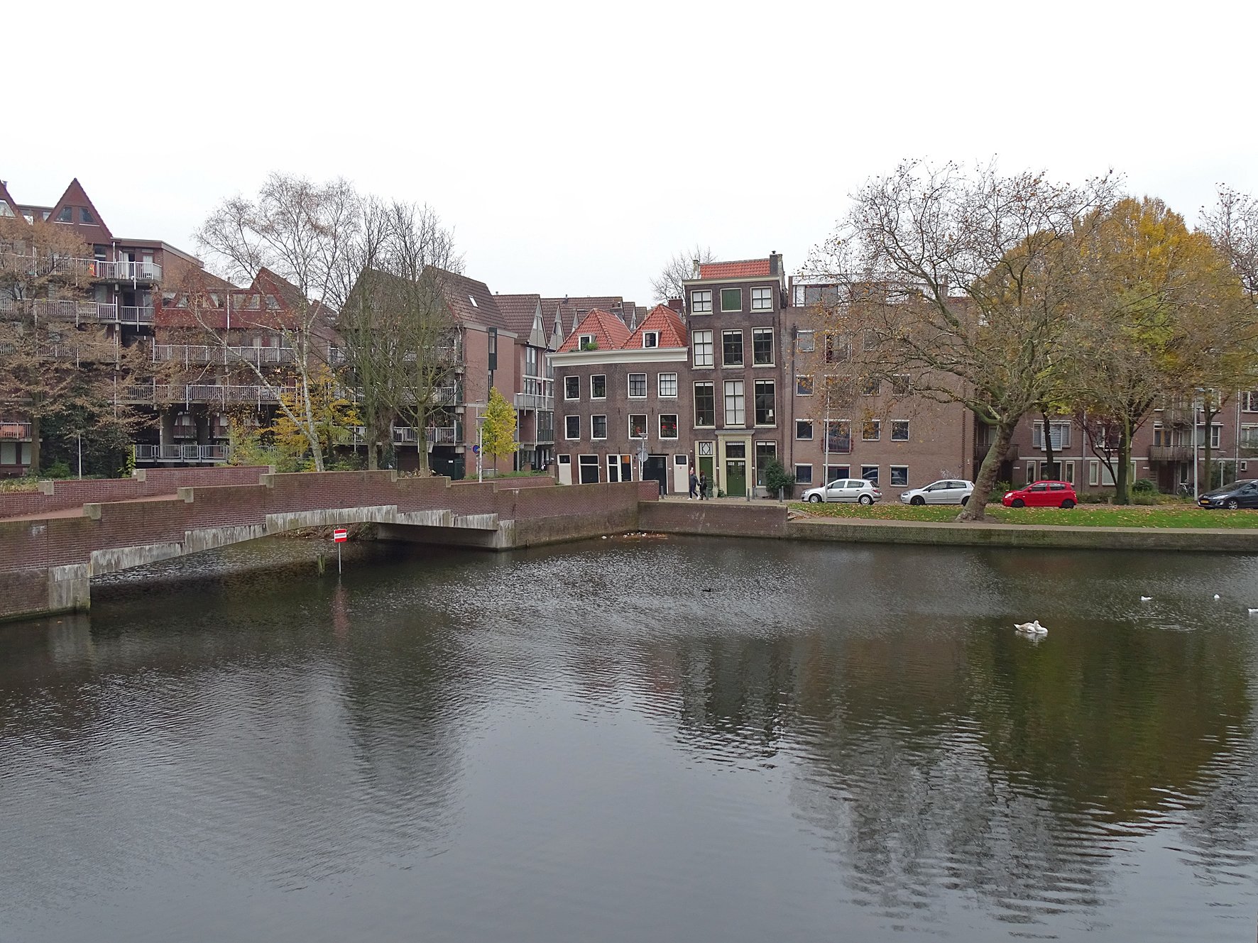 Lijkt me sterk dat het in buitenland zou zijn. Het gebouw rechts heeft z.g. kruispannen en dat is een typisch Nederlandse verschijning, zie ook mijn Streetview-beeld van dat schattige huis in Moerkapelle onlangs. https://www.google.nl/maps/@52.0440098, ... 384!8i8192