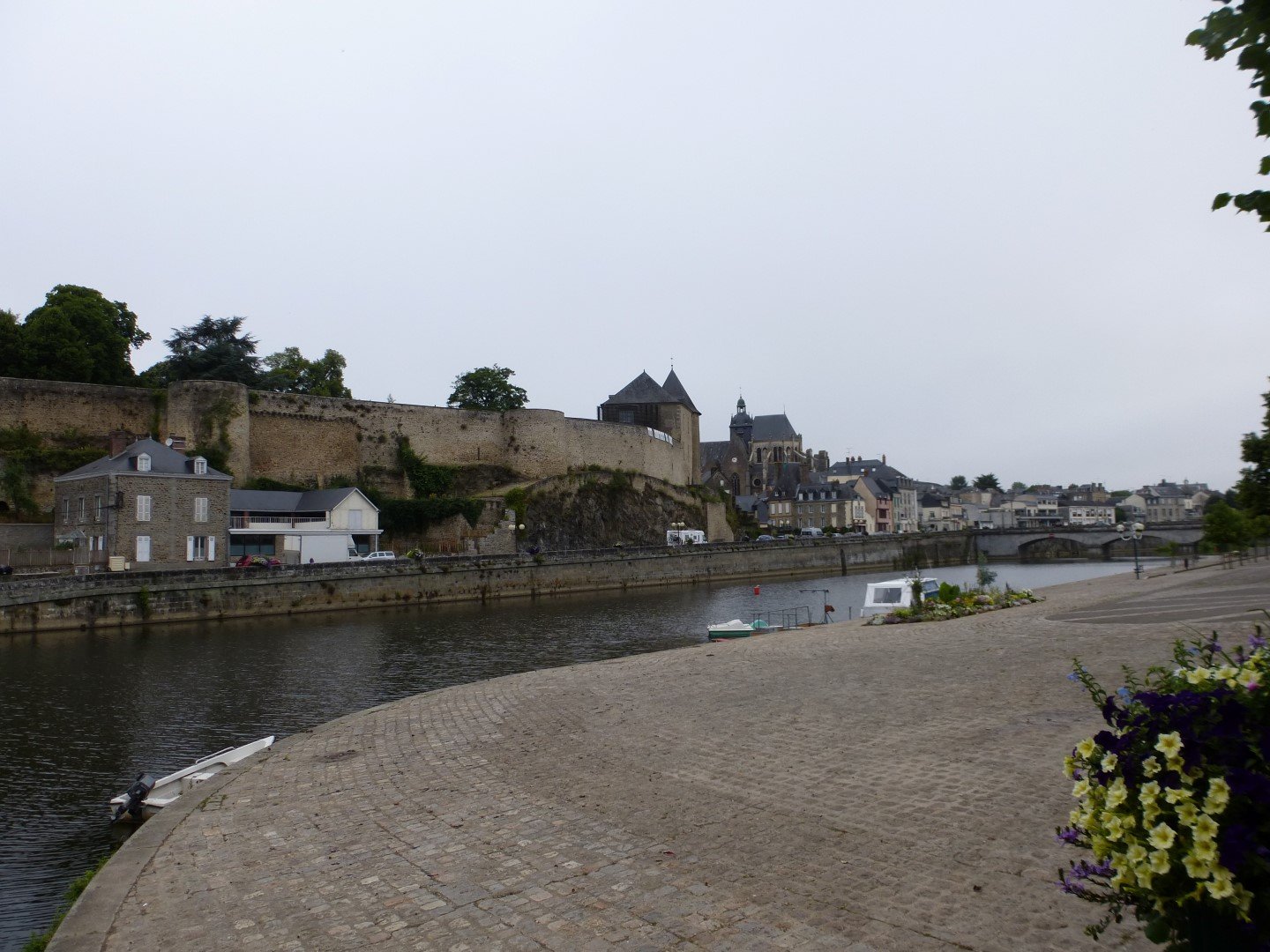 Daar is het ja, Je ziet het kasteel en de basiliek van Mayenne.