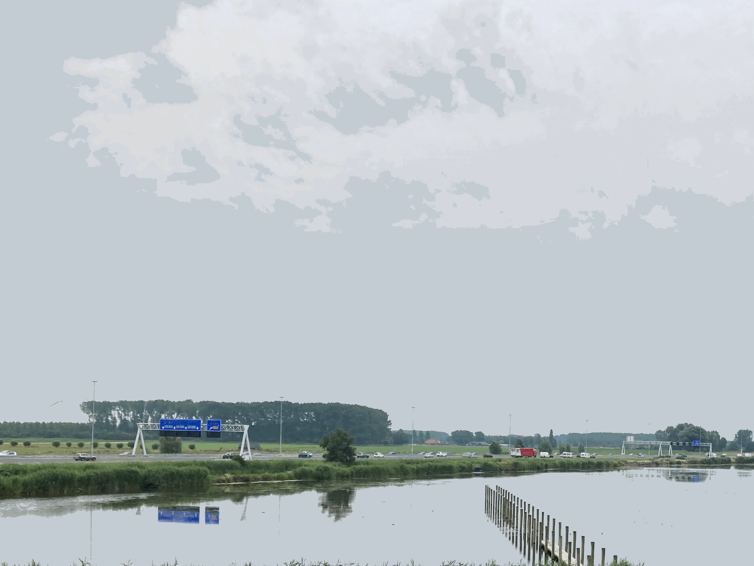 Dit hier? Vanaf Doorgezaagde Bunker bij Zijderveld ten westen van Culemborg. Is makkelijk omdat de A2's op de borden niet zijn geblurd.