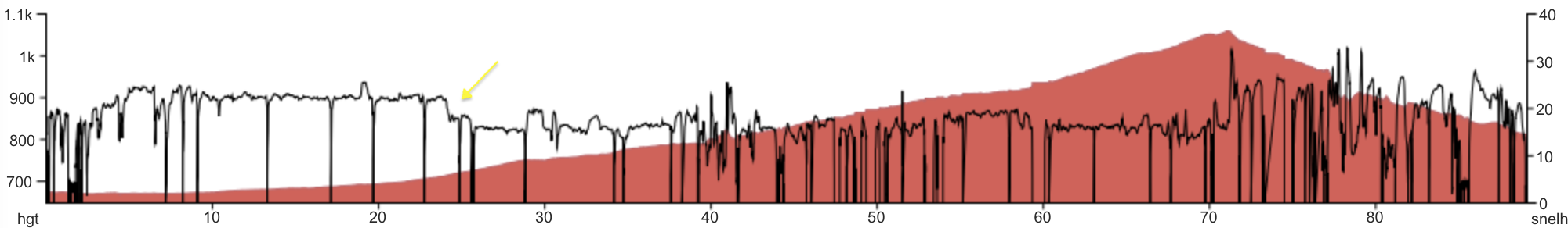 Beneden geeft Climb Pro de volgende klim aan. 400m, dan is de voormiddag wel gevuld. De klim naar boven is heel wat moeizamer dan gisteren, het wegdek is nog steeds rotslecht en steil, ik heb mijn kleinste versnelling nodig.