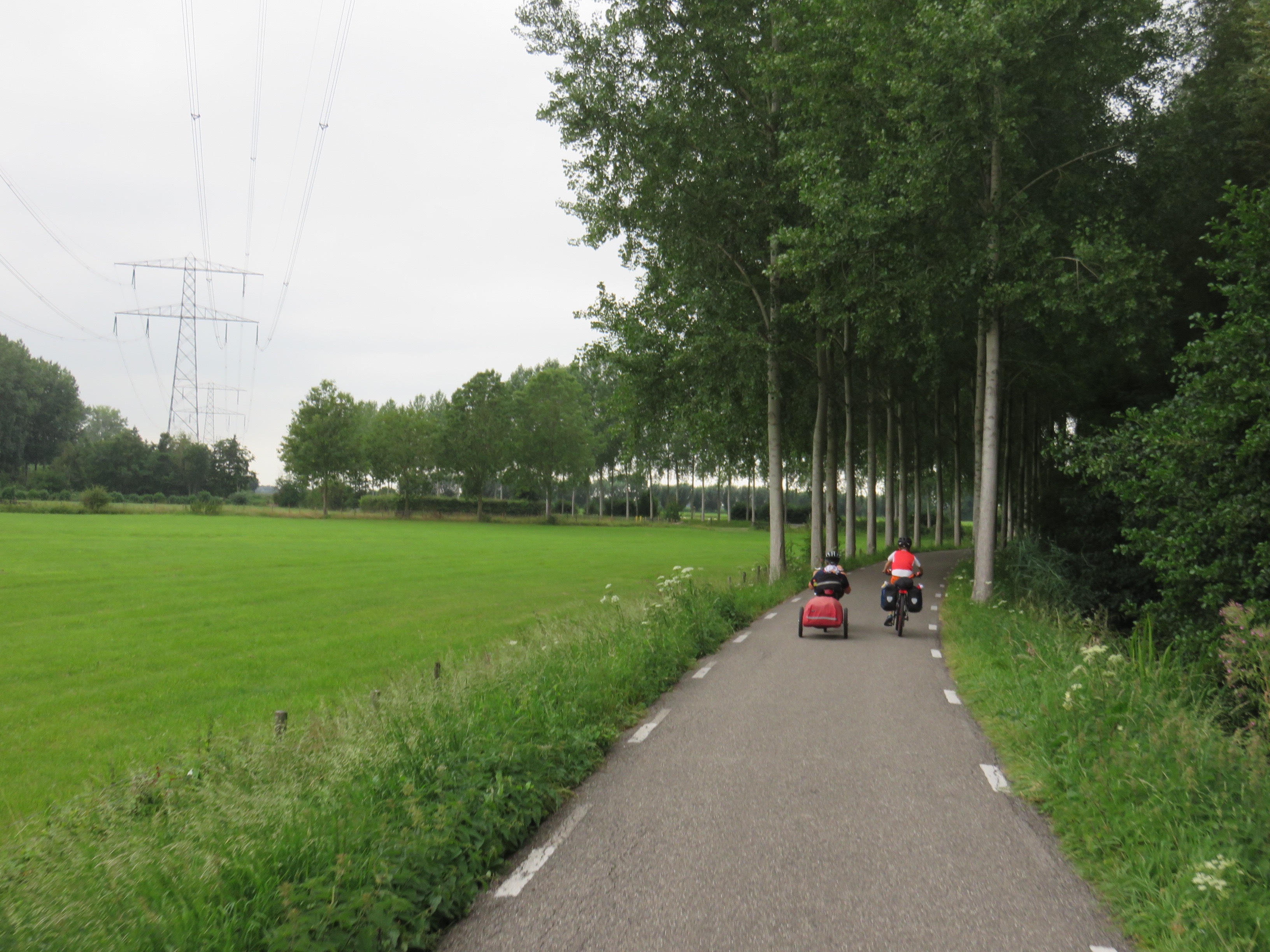 De hoogspanningsmasten hebben maar twee paar armen, met boven twee en onder vier draden. Dat is niet veel. Dit type masten zie ik van Vierverlaten naar Cammingaburen lopen.