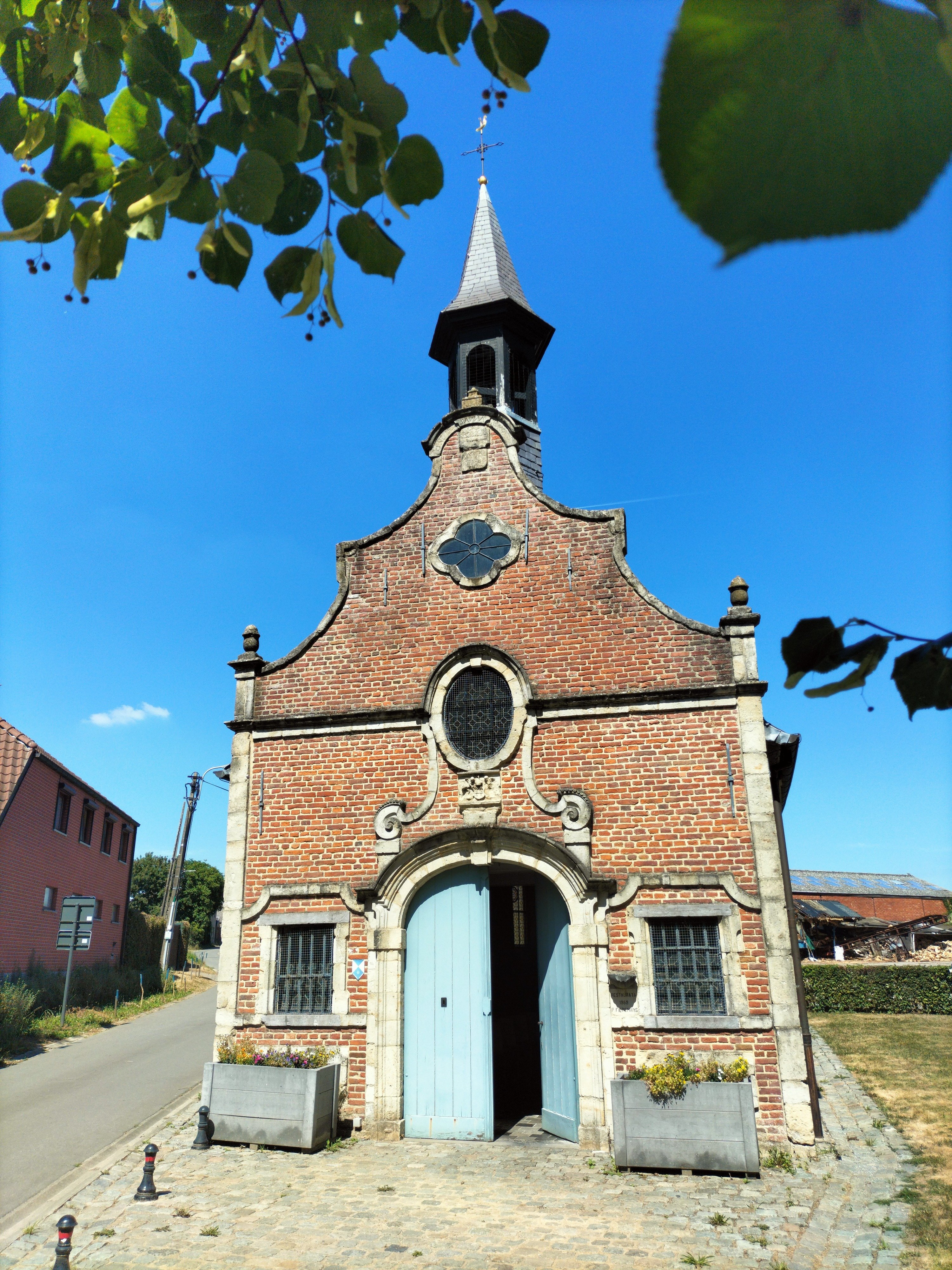 Maar ook rond Brussel is het prachtig. De fietsknooppunten brengen me op plaatsen, hellingen (vorige week de Smeiberg! Ik keek naar rechts en waande me in Normandië) en bij gebouwen die me vervullen met diepe voldoening. Zoals bij deze kapel waar ik wat verpoosde onder een boom.