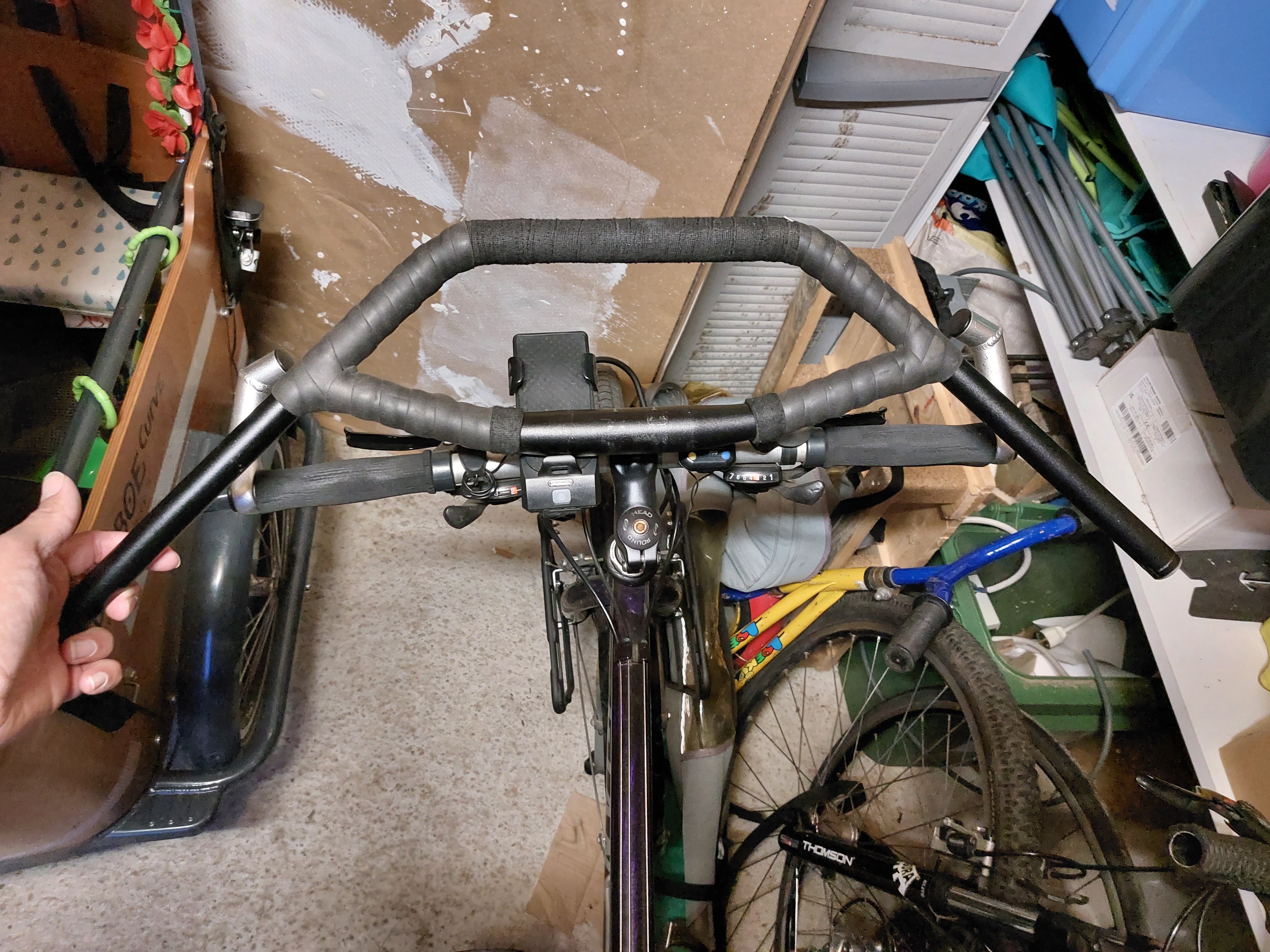 De "ideale" stuurbreedte voor mij zou ongeveer tussen de 51 á 53 cm moeten zitten. Dat is wat de metingen zeggen. Nu is mijn stuur 53cm en voelt net wat te smal aan.