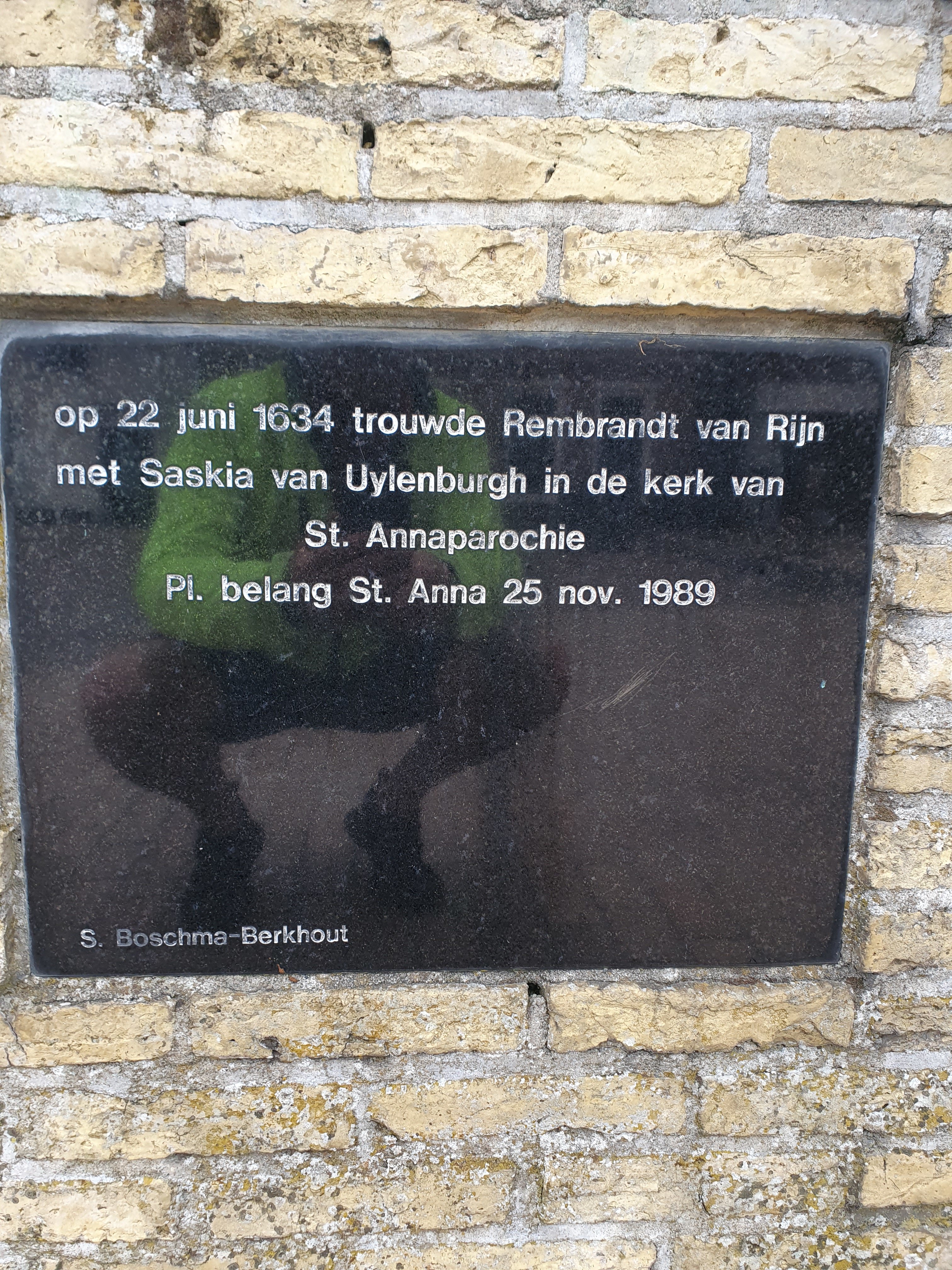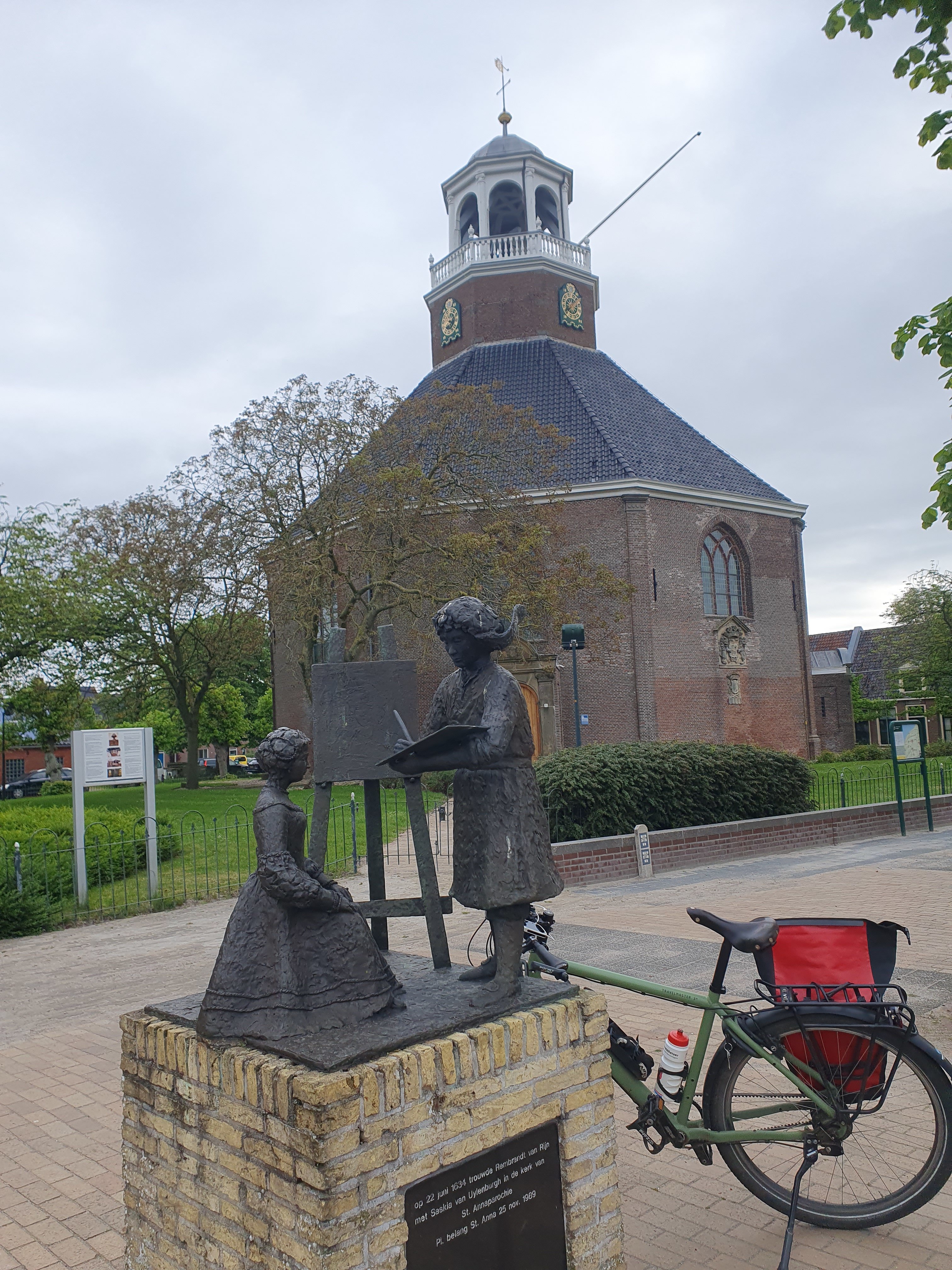 Na Zwarte Haan nog een km of zes verder langs de zeedijk en toen weer landinwaarts. Langs Ouwe Syl en door Het Bildt naar Sint Annaparochie. Daar bij de kerk, waar kennelijk Rembrandt ooit Saskia van Uylenburgh trouwde, even wat gegeten.