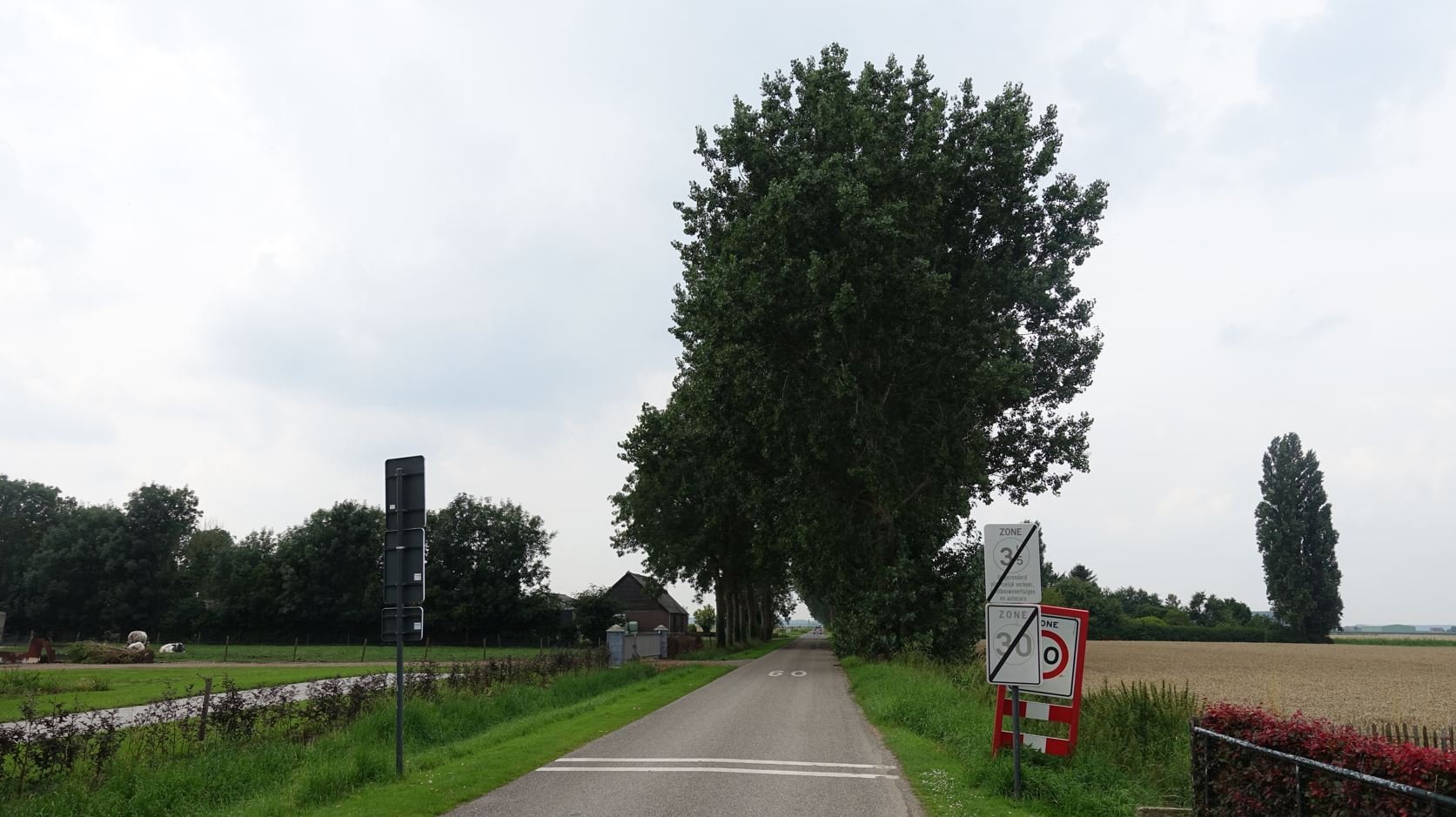 3. België, omdat een landeigenaar een pad over zijn land had geblokkeerd waardoor ik bij het zoeken van nieuwe route op een weg belande richting west met aan de rechterkant de grenspalen