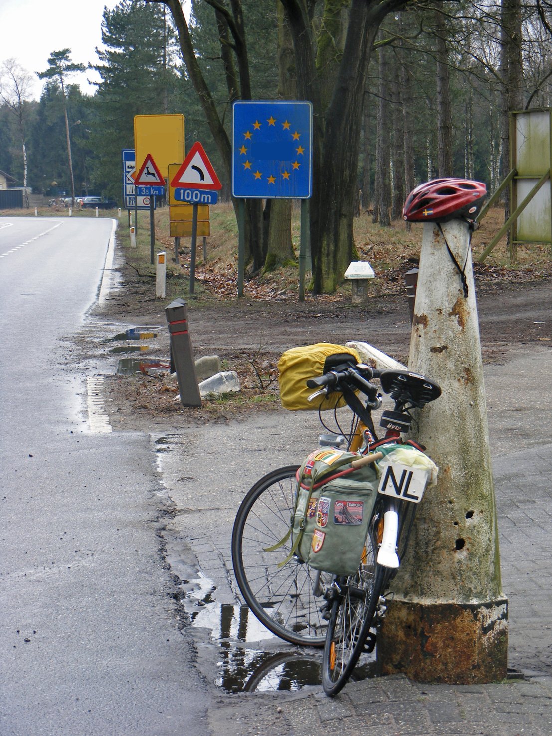 M'n vader heeft in 1947 in dezelfde omgeving rondgefietst, natuurlijk nog tussen de puinhopen van na de oorlog. Hij overnachtte in de jeugdherbergen van Nijmegen en Arnhem. En hij maakte foto's van het toegangshek van landgoed Doornik. Geen familiebanden, maar gewoon voor het leuk. Op de achtergrond de ruïne van het kasteel, verwoest in 1944.