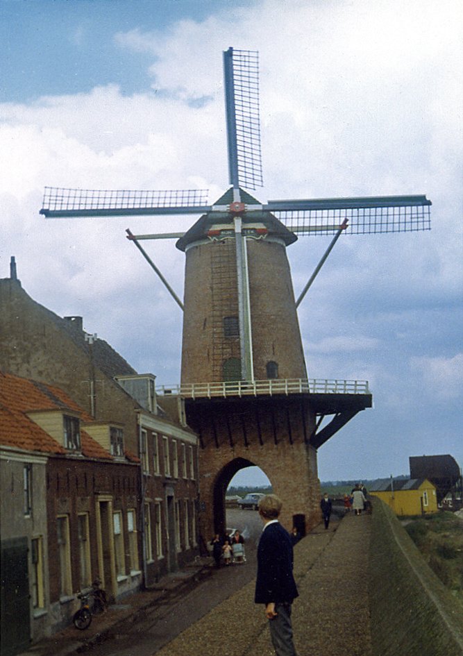 Het Gilde van Vrijwillige Molenaars was toen nog niet opgericht: geen zeilen op de wieken aanwezig.