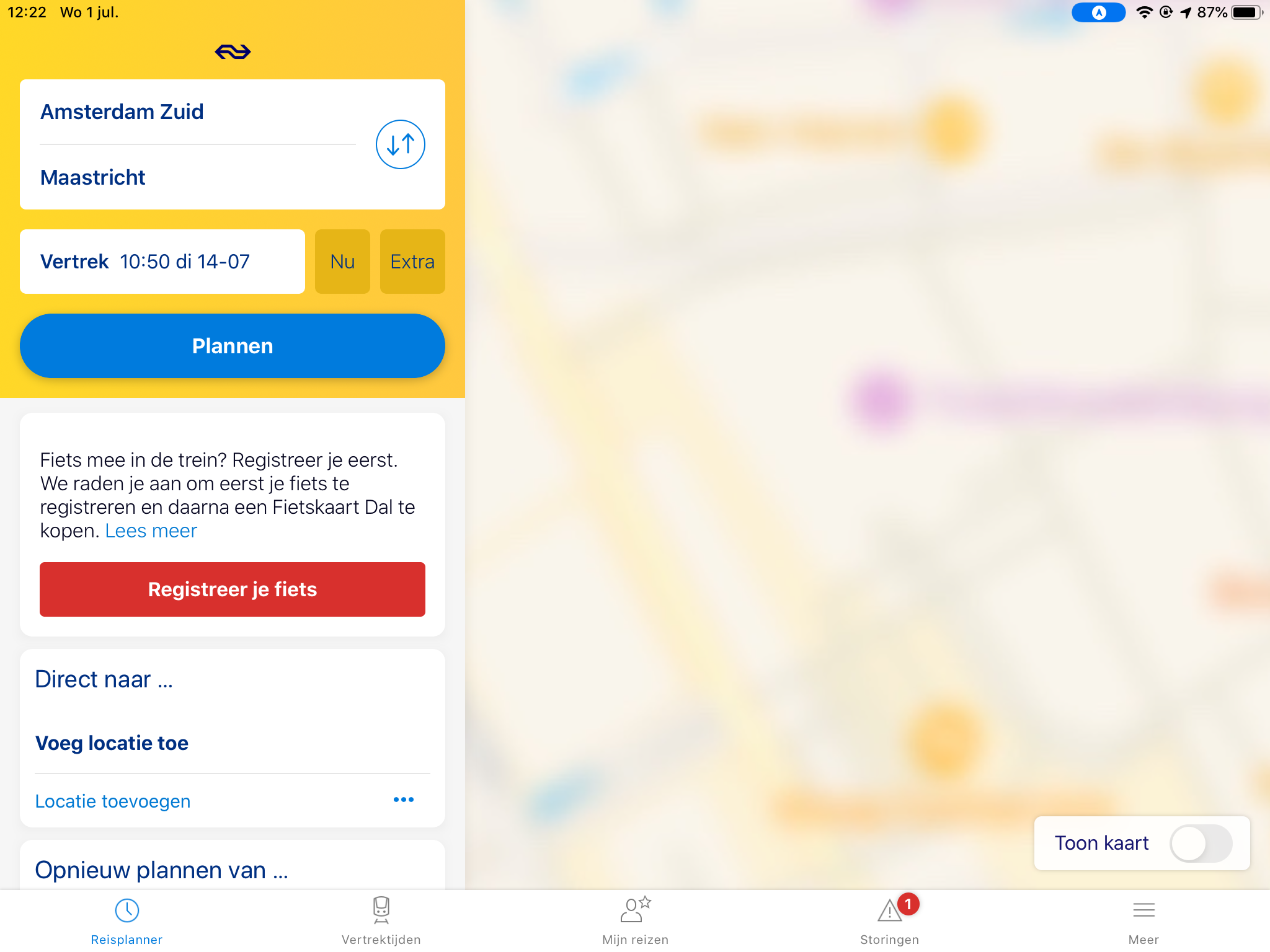 Maar waar vind ik die registratie-optie? Heb wat rondgezocht in de NS-app, maar vooralsnog niks gevonden (en zeker niet zo'n screenshot als ericplan hierboven plaatst).