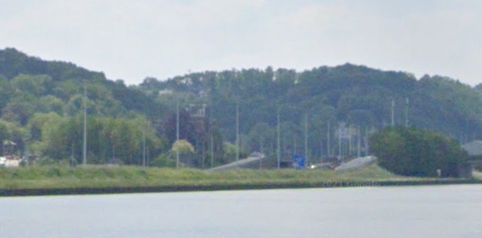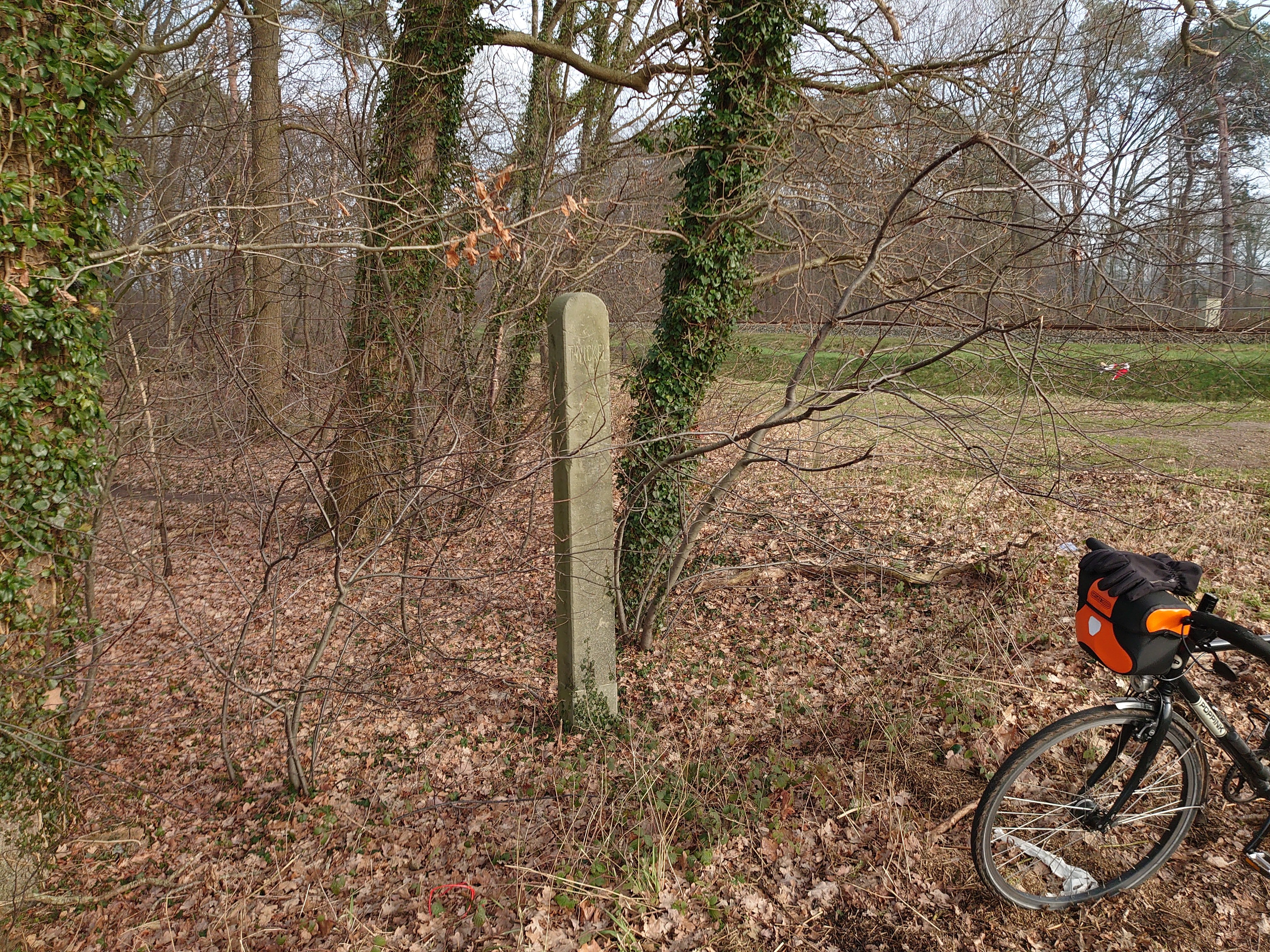 Opmerking: de paal staat dubbel afgebeeld, dat is nou een foutje van de Streetview-camera. De bladeren erboven zijn ook dubbel.