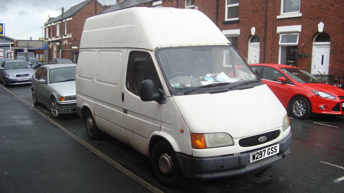 Dankzij de DVLA ben ik erachter gekomen wat voor wagen eraan heeft gezeten en er is zelfs een foto van, dit is 'em! Een witte Ford Transit uit Bristol, bouwjaar 2000.