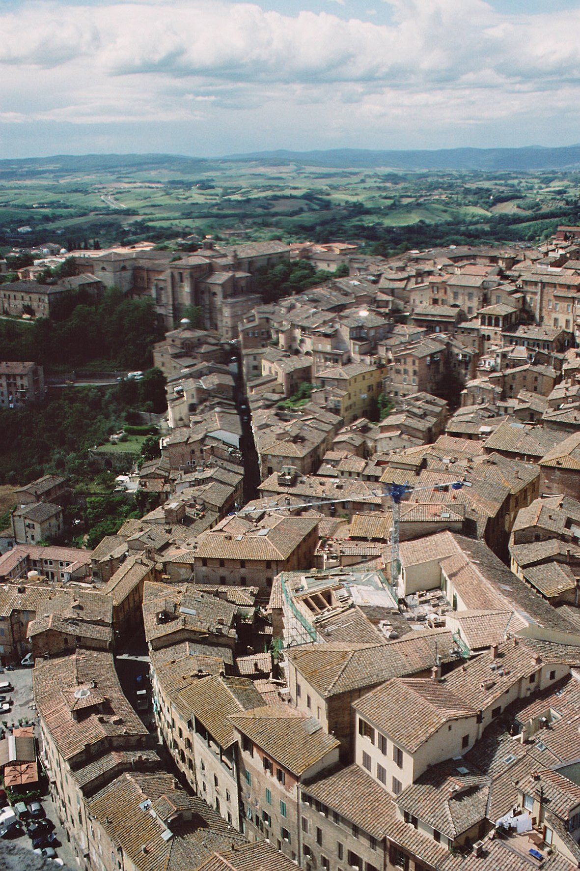 Maar tja, je hebt het goed, vanuit de campanile van Palazzo Publicco in Siena. 102 meter hoog.