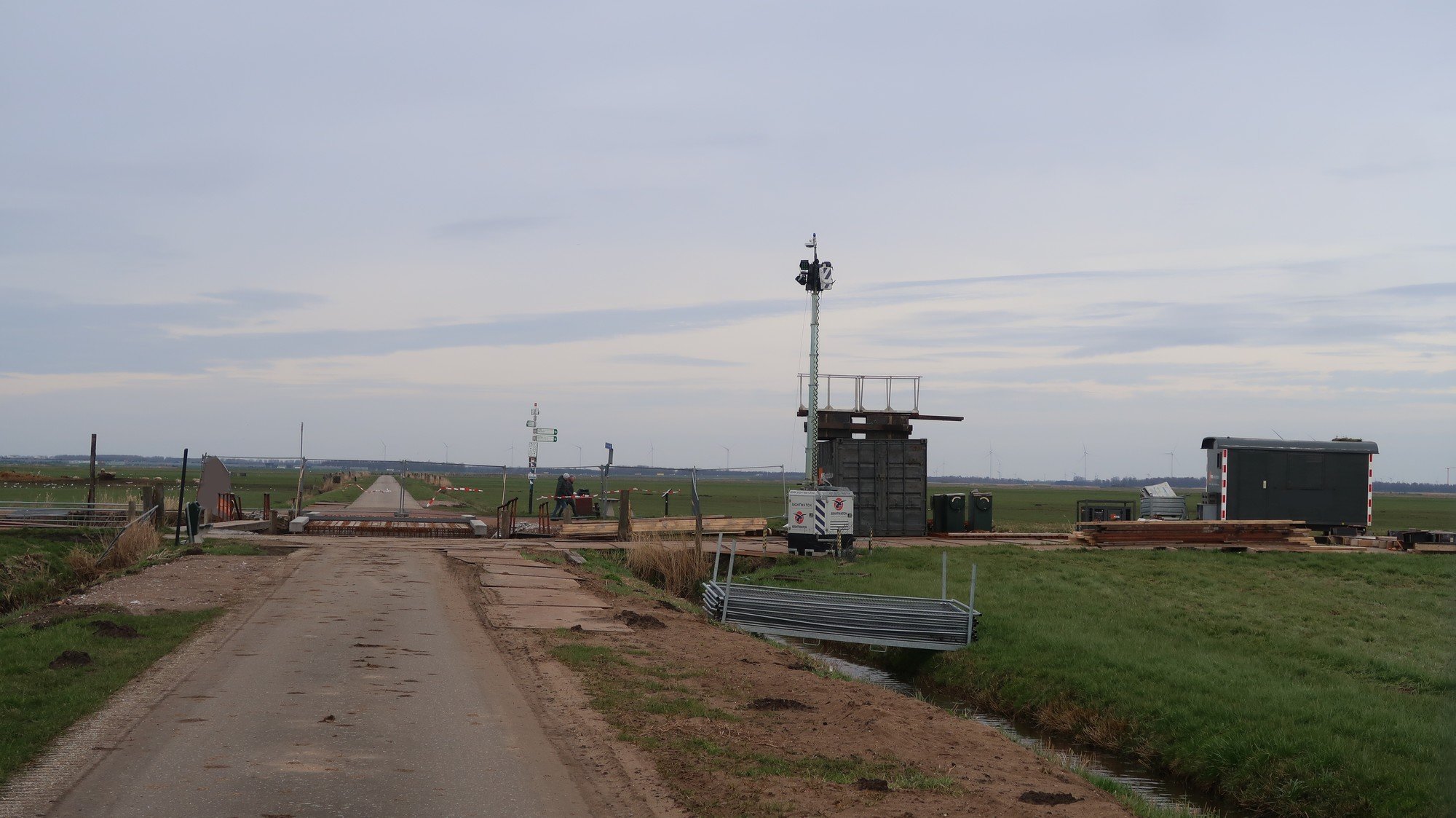 Eemland. Iets ten oosten van Eemnes. Plaatsen brug ter vervanging van fietspontje.