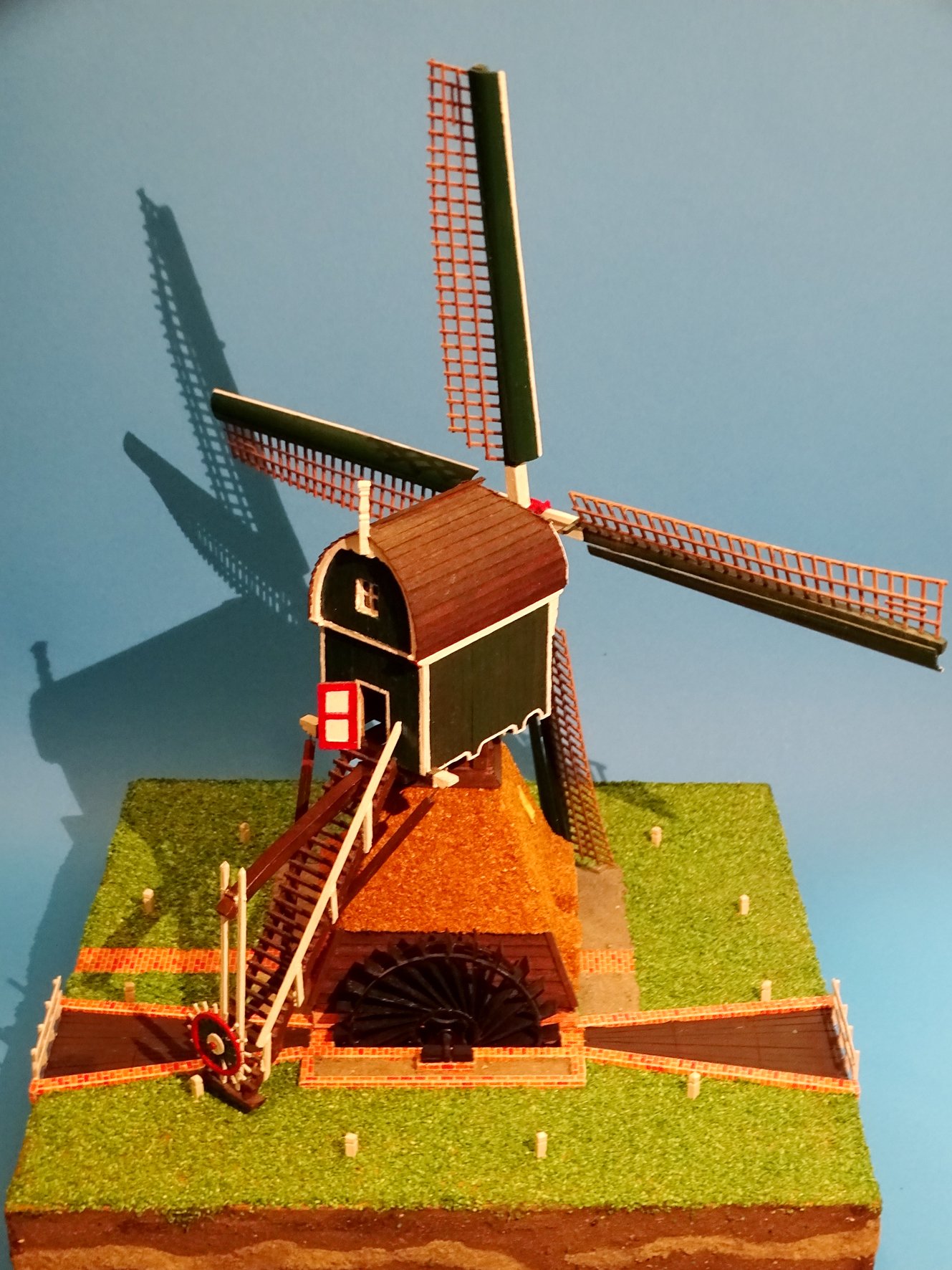 Van een Zuidhollandse wipmolen heb ik thuis een schaalmodel gemaakt, tiphoogte 40 cm.
