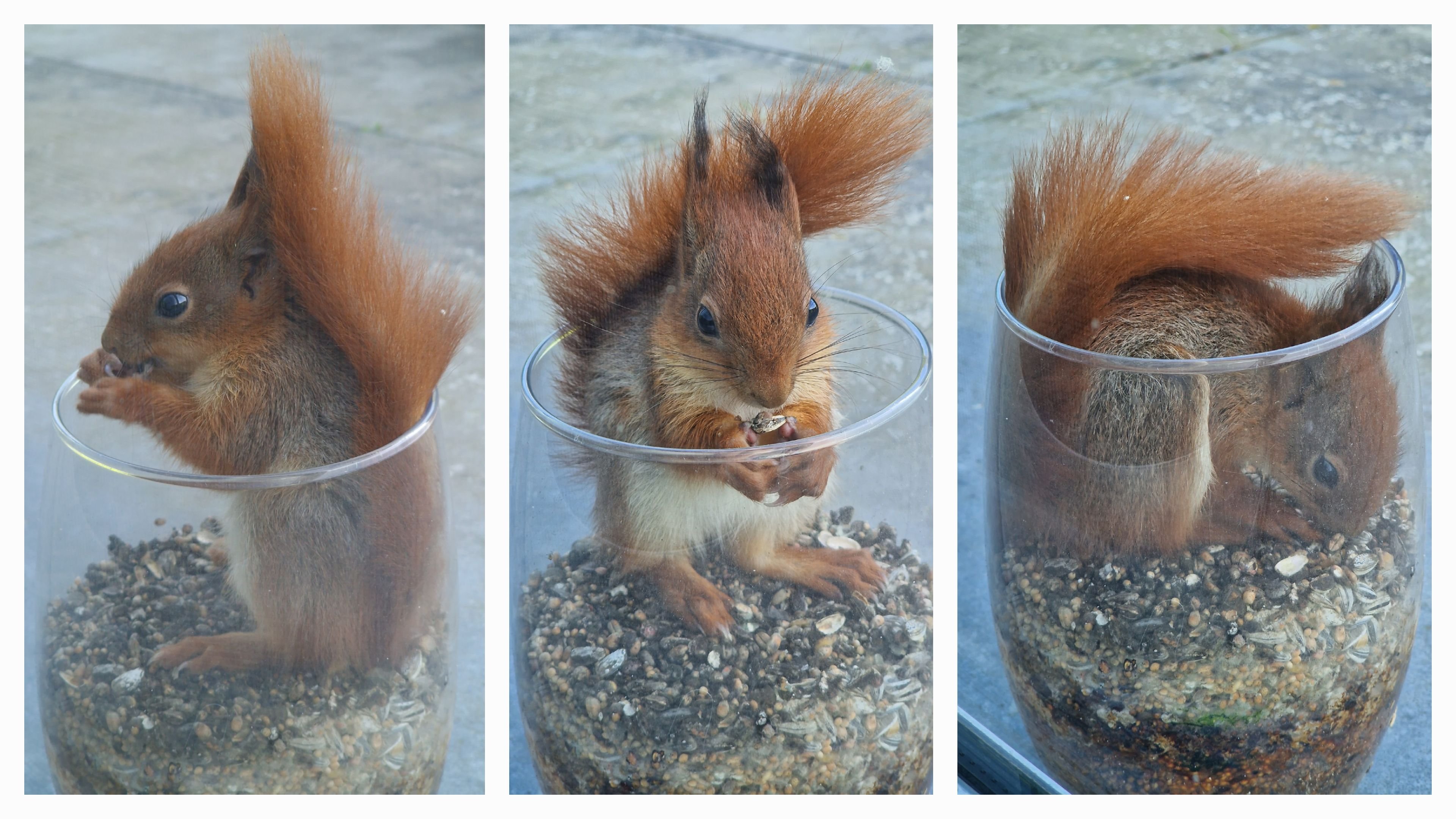 Deze kwam vanmorgen aan het raam zitten. In een soort van eekhoornterarrium.