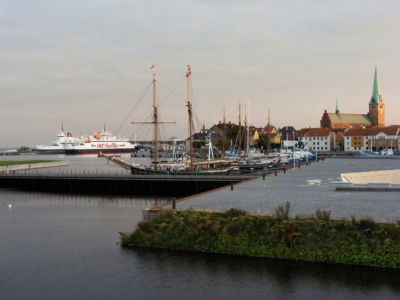 Het was 14 augustus 2016, we waren onderweg naar Zweden en overnachtten op de jeugdherberg van Helsingør, een prachtige villa met eigen strand aan de Sont. Ik had m'n fiets mee, leuk om die avond nog wat rondjes in de Deense havenplaats te maken. Links buiten beeld staat het bekende kasteel Kronborg.