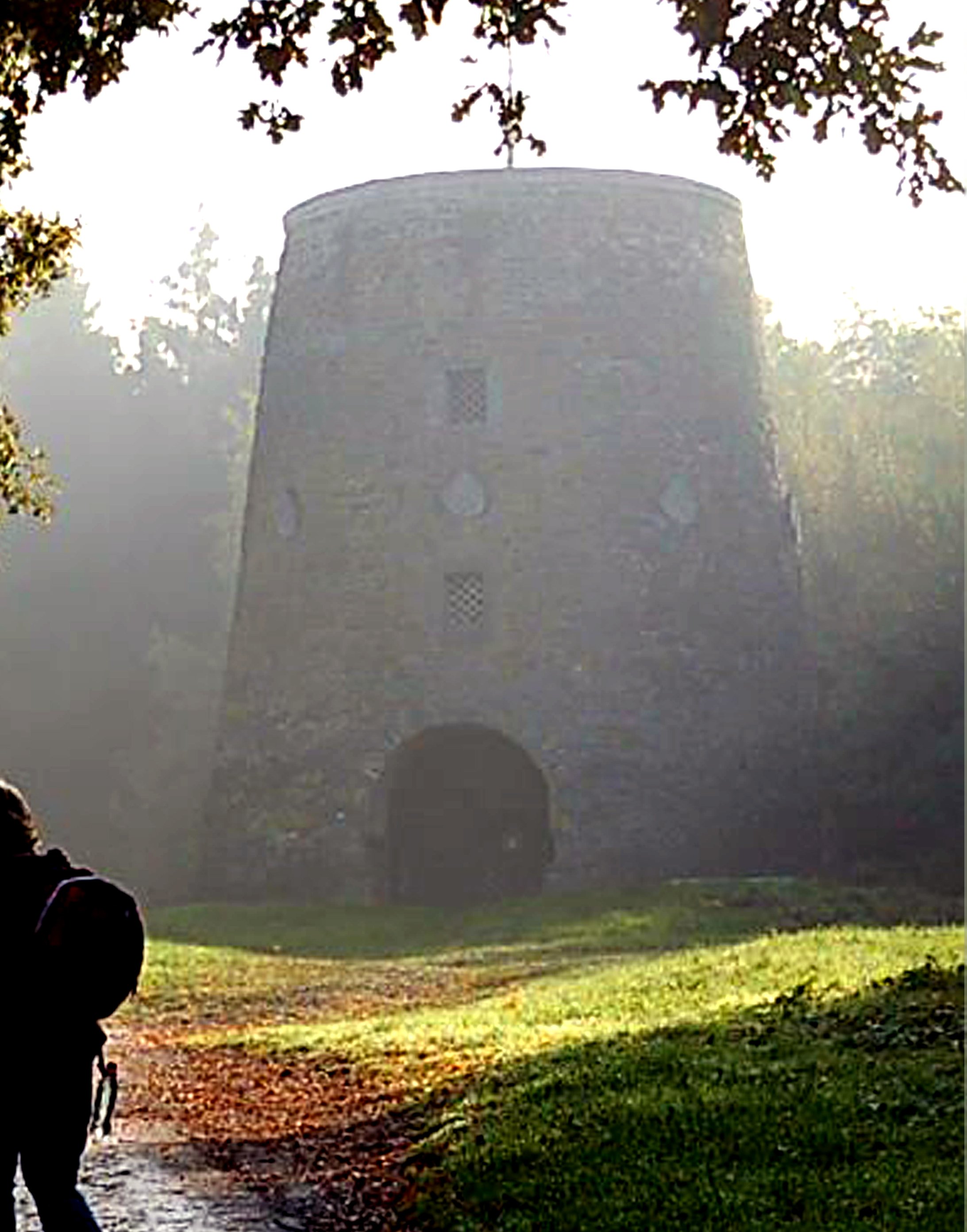 Duidelijk een afgeknotte romp van een flinke stellingmolen. Maar die komt me niet bekend voor. Zeker niet midden in een bos of park.