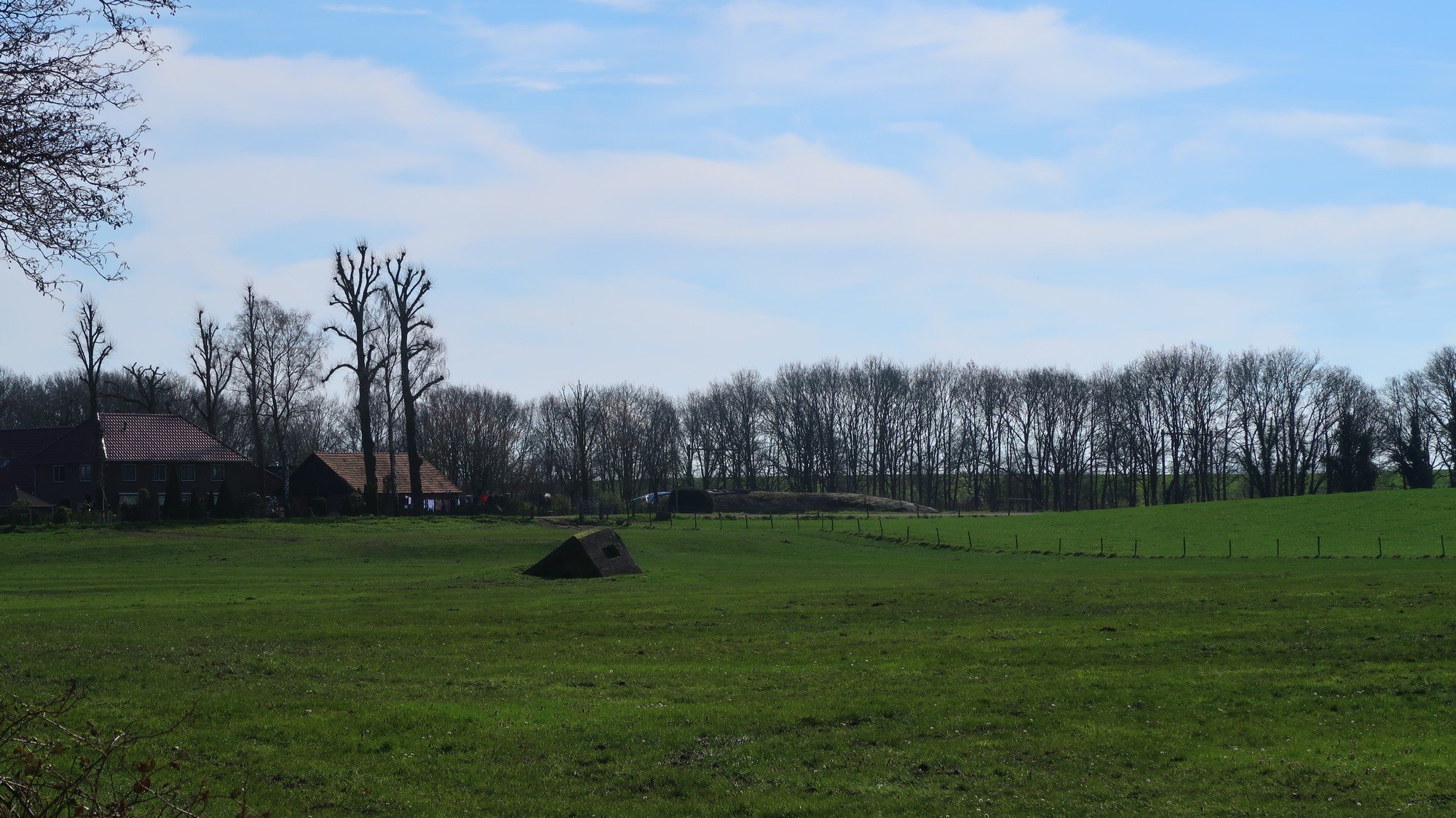 Nee het is geen dijk op de achtergrond en ook niet in Brabant of Zeeland maar in de buurt van mijn vorige raad plaatje. Er is streetview, de bunker is daar wat lastiger te zien door de bomen langs de weg.Martin E. van Doornik schreef: ↑za 16 mar, 2024 00:26Mmm.... lastige plaatje. Een oorlogsbunker, weggezakt in de slappe bodem. De boerderij links valt qua bouwstijl moeilijk te plaatsen. Een spoorlijn met daarachter een hoge dijk. Dacht ik: ergens dichtbij de Duitse grens, maar alle spoorlijnen komen daar nergens overeen.