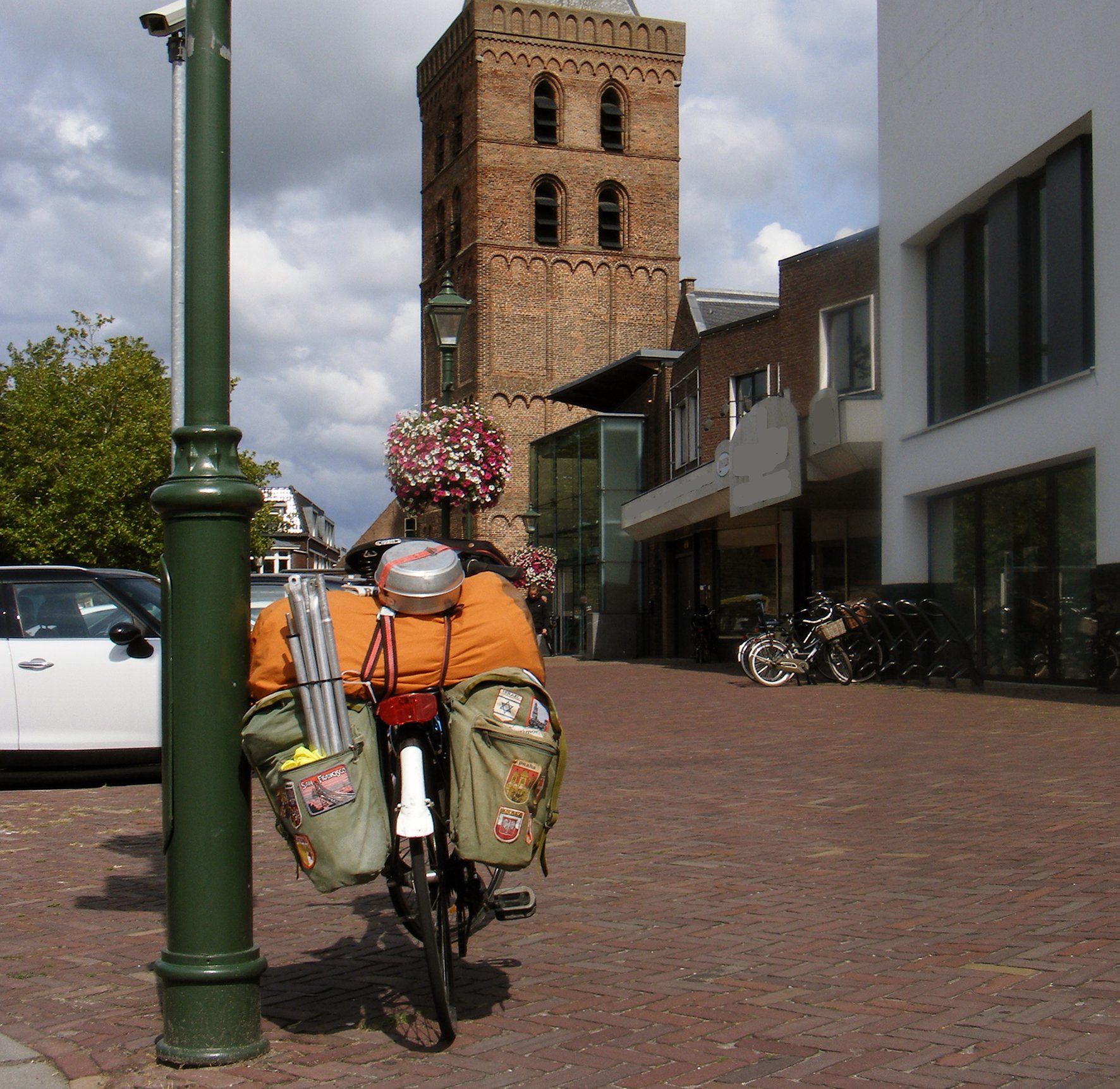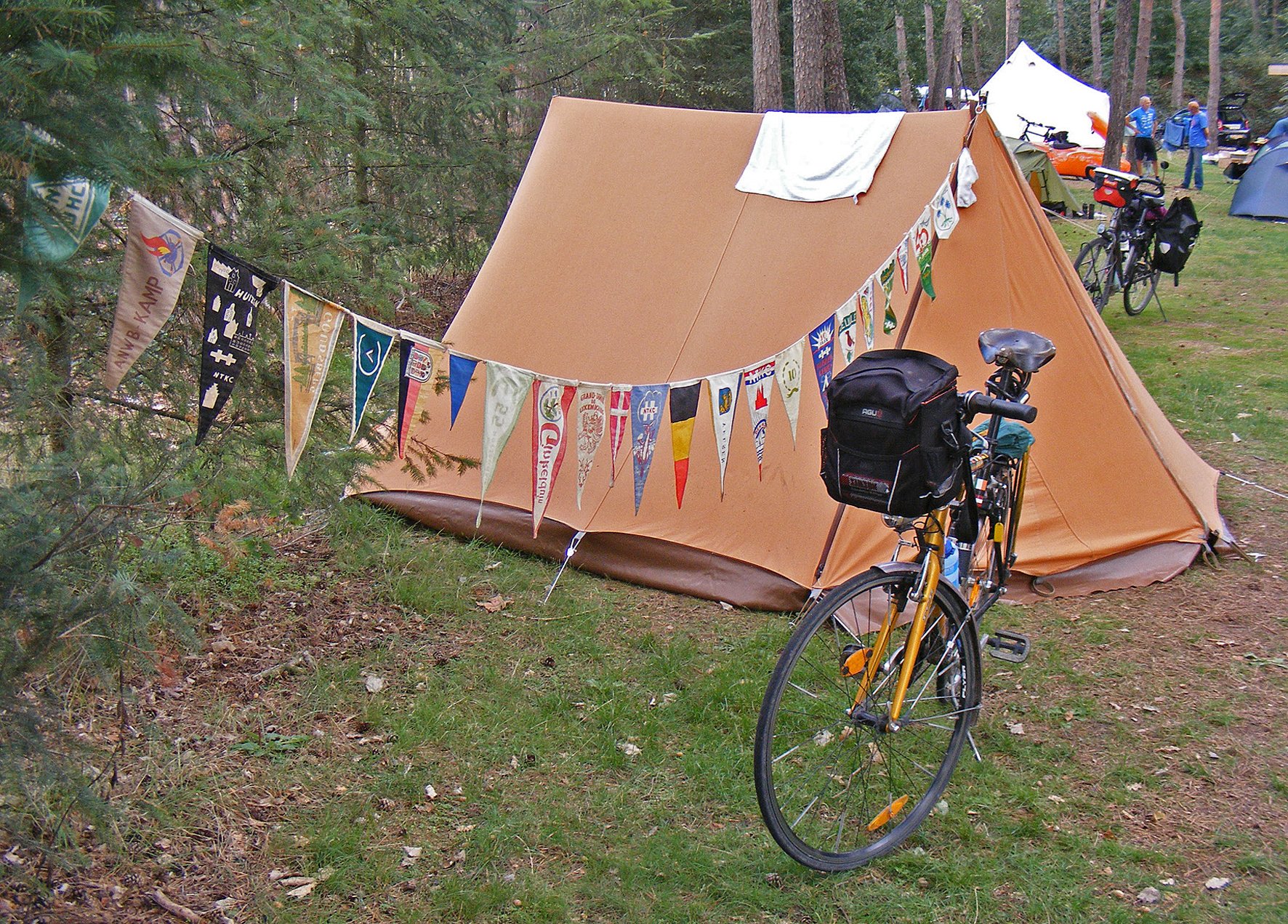 tag:Heel goed, Frank. Ik was onderweg naar "jullie" Harskamperdennen in 2018. De toren van Schaffelaar heeft wel wat lang op zich wachten.... Dit is mijn tent op de Harskamperdennen, gewicht ruim 11 kilo. Niet compleet, want er hoort nog een verlengstuk aan, die ik thuis had gelaten. Eigenlijk een echte gezinstent. Mijn kleine tentje, geschikt voor fietstochten, had ik in 2012 weggegooid, te oud en lek geworden. De vlaggetjeslijn was nog van m'n vader uit de jaren vijftig.Frank schreef: ↑ma 22 apr, 2024 20:30Oude Kerk In Barneveld
