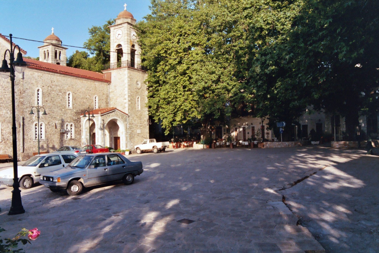 Het lommerrijke kerkplein moet, aan de automodellen te zien, zeker 15 jaar geleden zijn genomen.