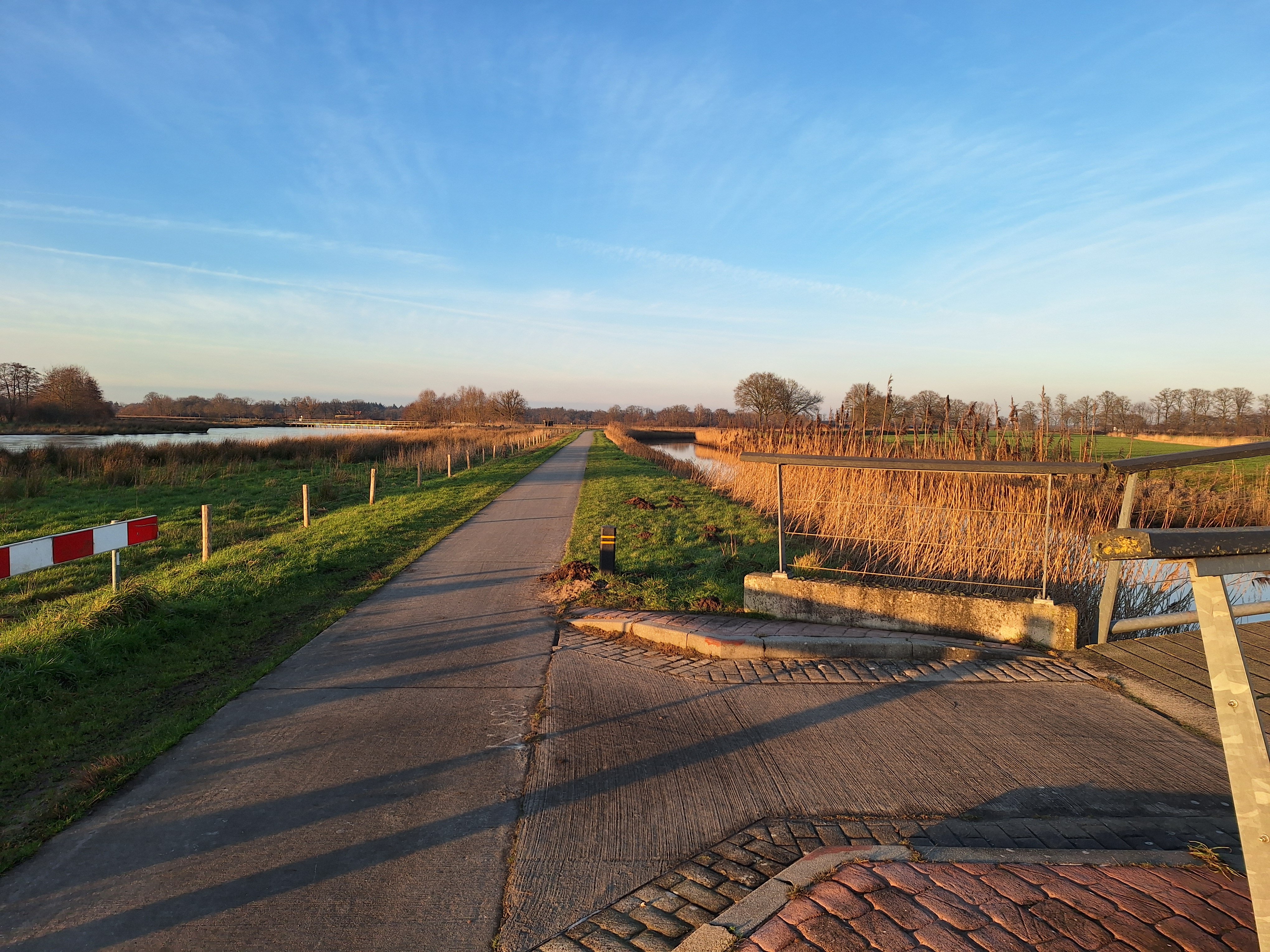 Lastig plaatje. Het brede water links, daar zie ik een stroming in. Kan de Overijsselse Vecht zijn, maar vanaf Ommen tot Haandrik niks gevonden. Andere rivieren zoals Regge en Dinkel zijn te smal. Vast geen kanaal, want de brug is te laag. Ik stop maar mee.