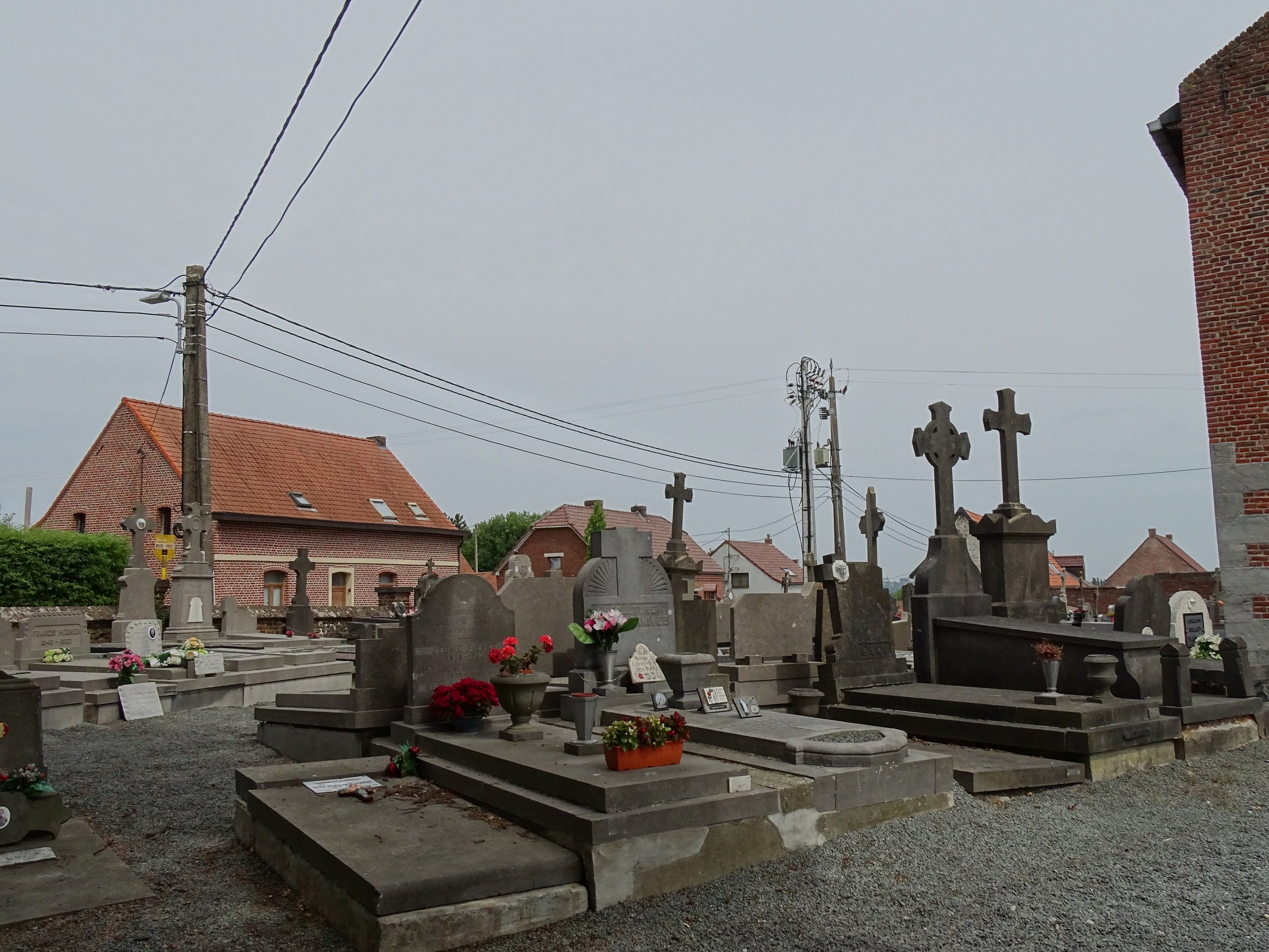 Het was werkelijk een raad plaatje, dat dwaalsporen heeft veroorzaakt. Het zag er zo „zuidelijk" uit, met een haast Franstalig gevoel. Maar toch onder ons eigen neus op Nederlands grondgebied! De bijgaande foto van het kerkhof van Lahamaide, waar ik op een grafsteen even had gepauzeerd (in de omgeving geen zitplaats te vinden), roept in mijn gedachten dergelijke overeenkomsten op. Heeft toch wel een aparte sfeer. Dit is géén raad plaatje!