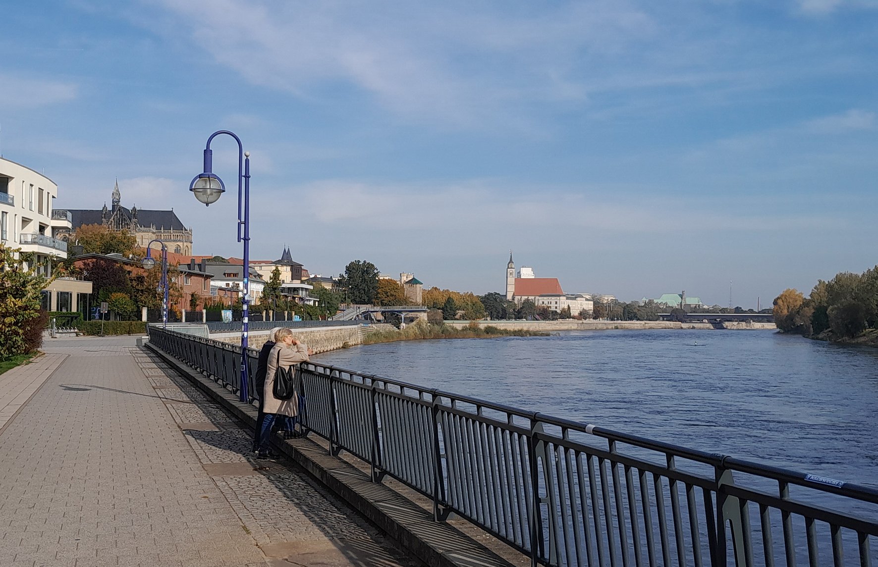 Ook deze weer gevonden, dit keer beetje door even terug te zoeken in eerdere plaatjes van Martin. Eerst dacht ik aan ergens aan de Rijn maar vorig jaar was je weekje in buurt van Dresden waar je nog mooi fotoboek van had gemaakt. En daarin staat oo foto van de kerken op dit plaatje. Het is aan de Elbe in Maagdenburg