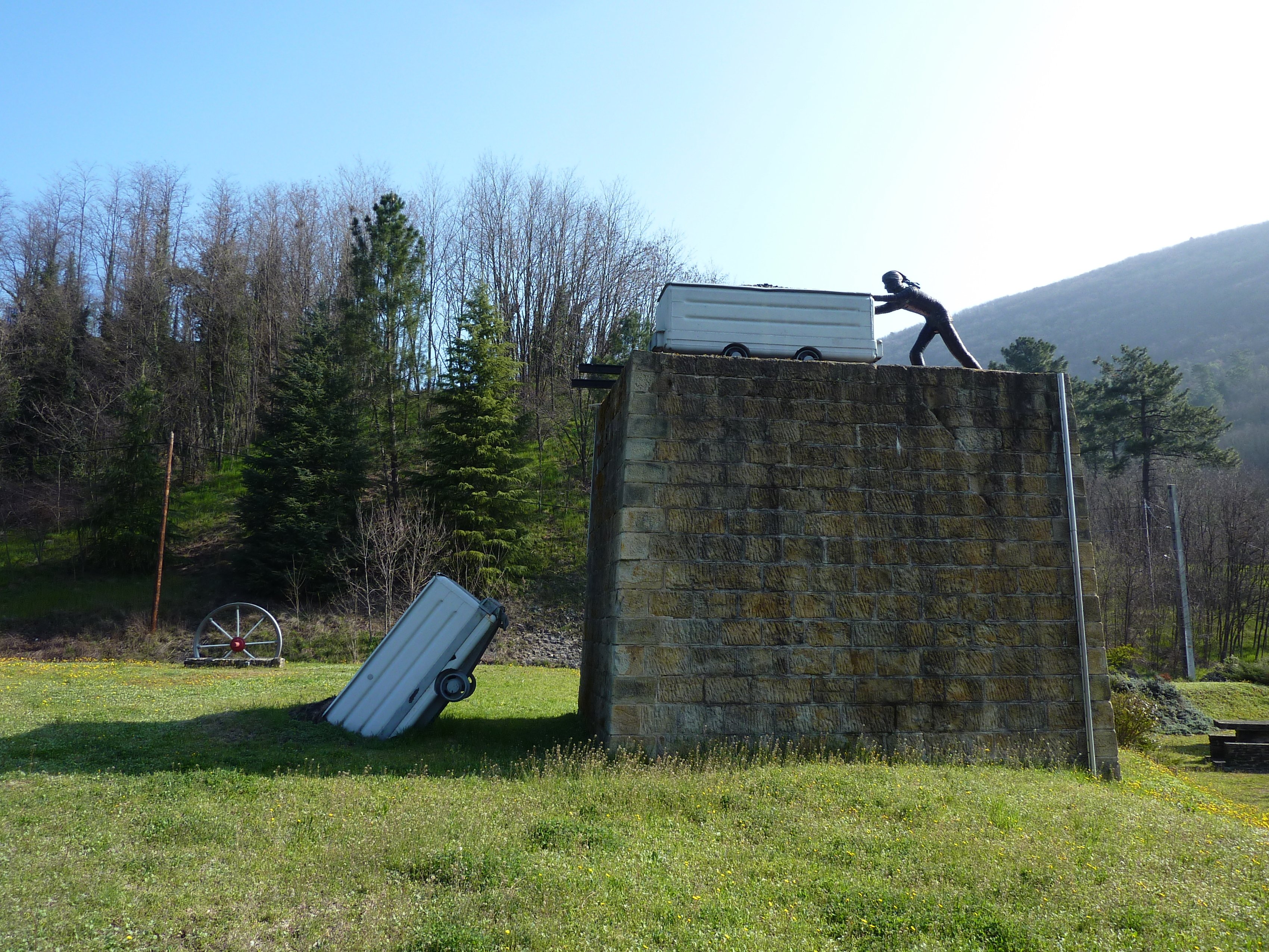Met de juiste uitsnijding in Google Lens kom je via via uit bij Gagnieres. Zie de wikipagina onder Geschiedenis. De achterkant van het object toont een viaduct. Het is een monument ter nagedachtenis aan voormalige mijnwerkers.