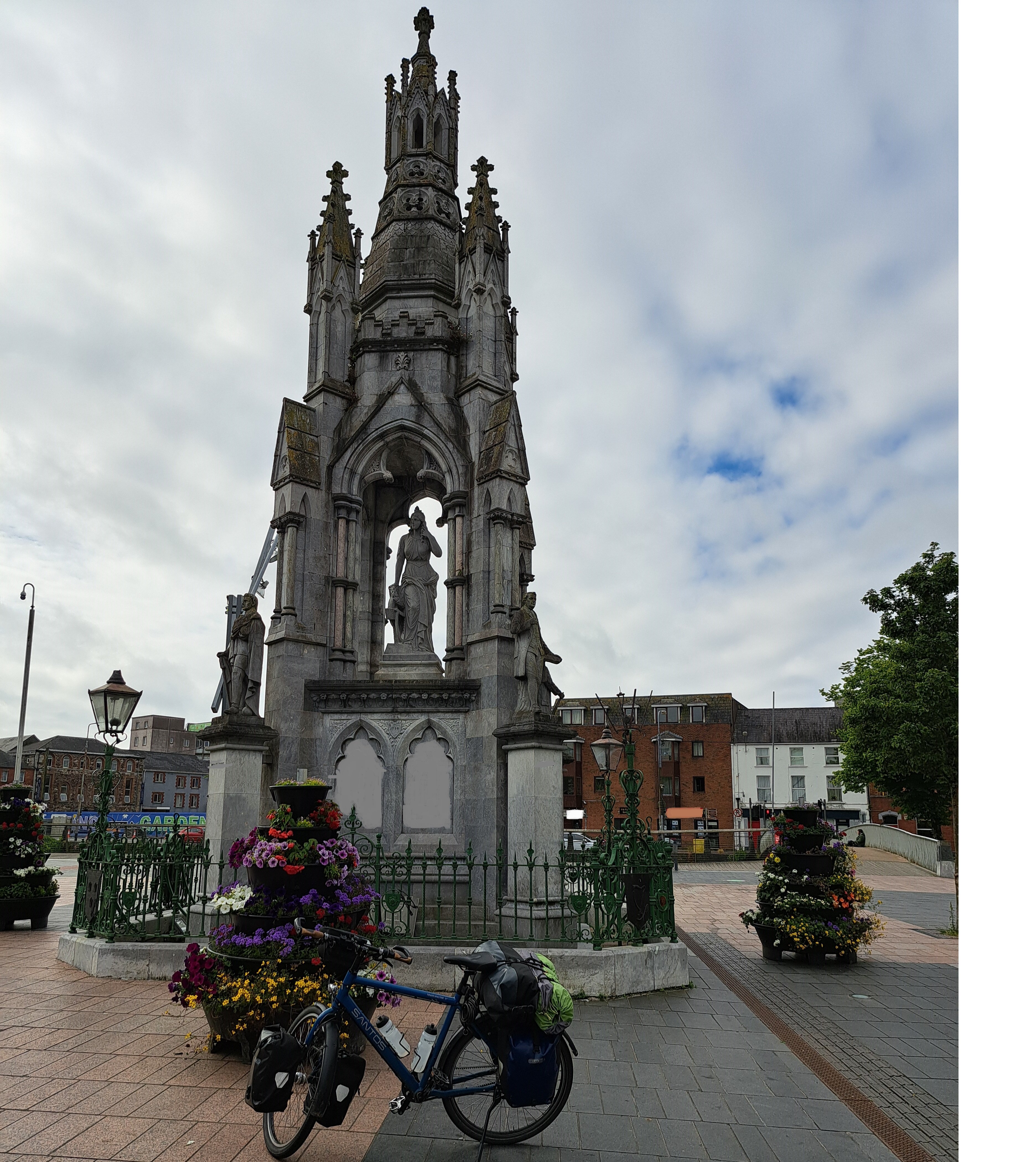 Ik zie dat die vrouw een Ierse harp bij zich heeft, gezocht naar "Monuments or statues in Ireland" en gevonden als The National Monument in Cork.
